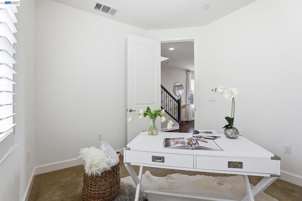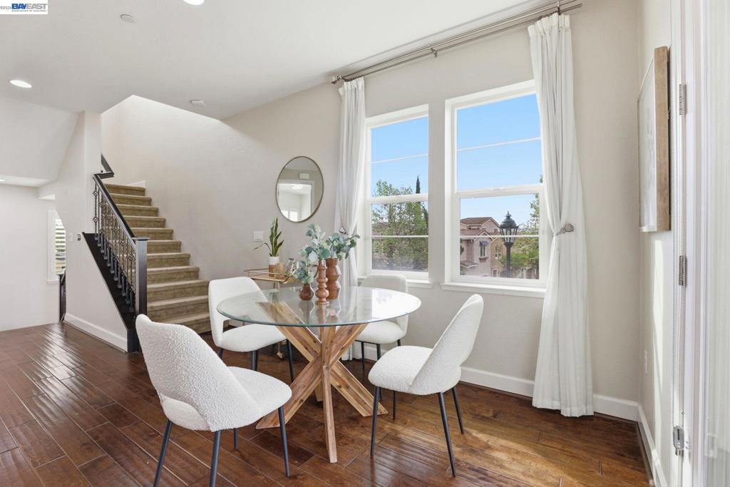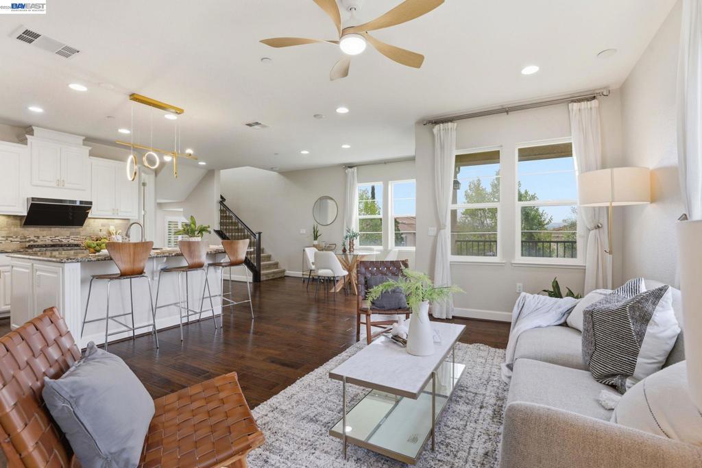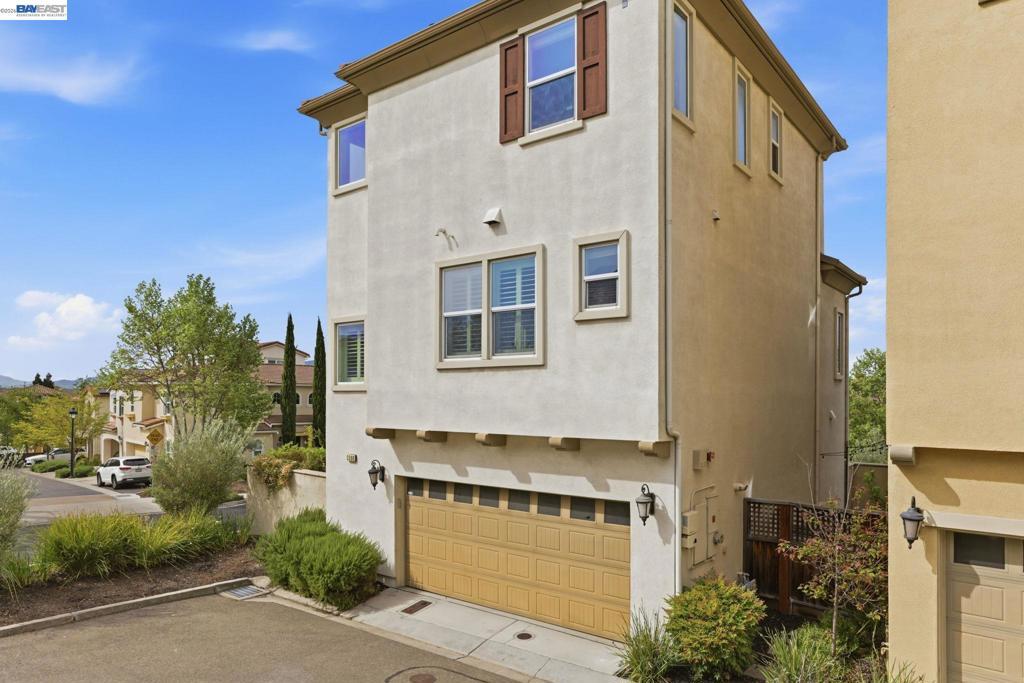 Gorgeous single-family home on a premium corner lot with spectacular mountain views and sparkling city lights at night. The home features three bedroom suites, including one on the lower level, all with walk-in closets. The second level offers an open-concept living space with hardwood flooring throughout, a spacious living room with access to a private balcony, and a gourmet kitchen with an oversized granite island, breakfast bar, upgraded backsplash, high-power range hood, gas cooktop, stainless steel appliances, and additional cabinetry with prep space. A bonus room can be used as a fourth bedroom, office, or den, providing flexibility for various needs. The third level includes two additional suites, including a spacious primary suite. A low-maintenance outdoor area with a functional pergola provides a comfortable space for everyday enjoyment and entertaining. Additional features include fully owned solar, a tankless water heater, soft water system, central A/C, and tile roof. HOA amenities include a gym, swimming pool, spa, and clubhouse. Conveniently located near Kolb Elementary, Fallon Sports Park, Emerald High School, shopping, dining, BART, and easy access to Hwy 580.