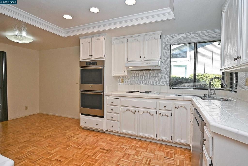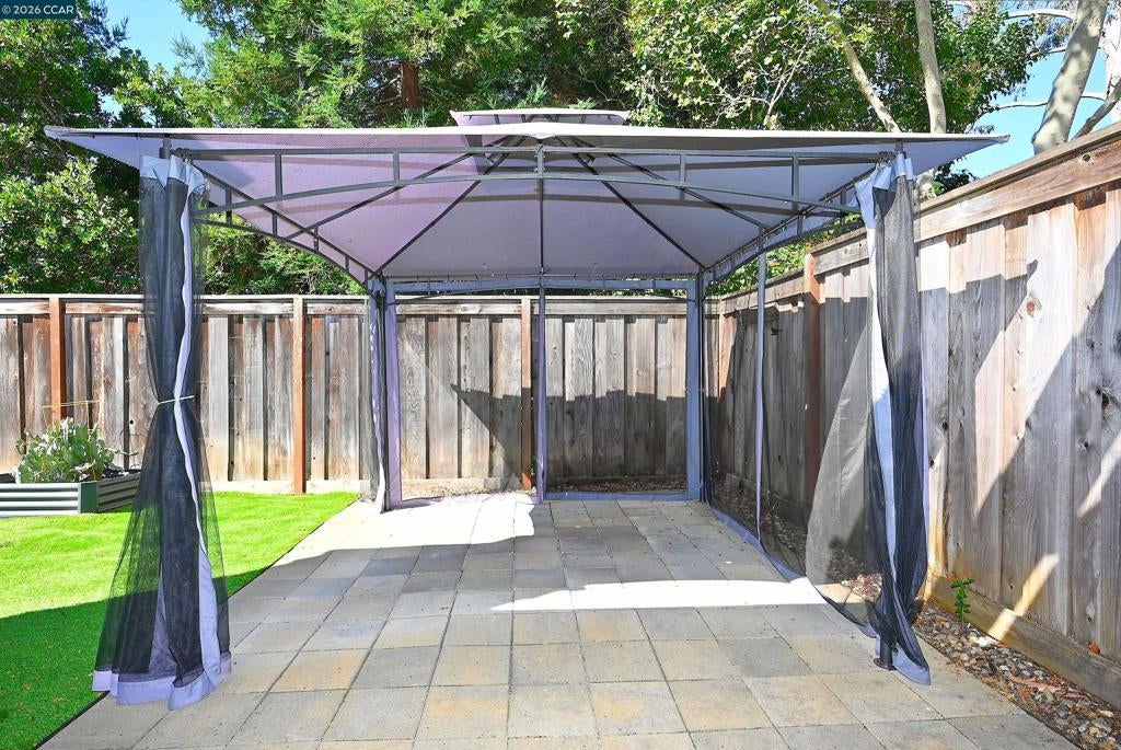 This development is in the Crow Canyon Heights area. It is a very desirable peaceful area with beautiful professional landscaping weekly maintained. Wonderful area to walk and enjoy the outdoors. This home is a very open floor plan bright and sunny. Living room with a gas fireplace. 3 Bedrooms 2 full Bathrooms. Formal dining room opens the living room. A nice kitchen with eating area that opens to the back yard. Inside laundry room with washer and dryer. The back yard is nicely manicured with a patio and astro turf area easy to maintain and private. One story house with 2 car garage. This home is attached on one side of the house. Walking distance to Crow Canyon Country Club. No smokers or pets allowed.