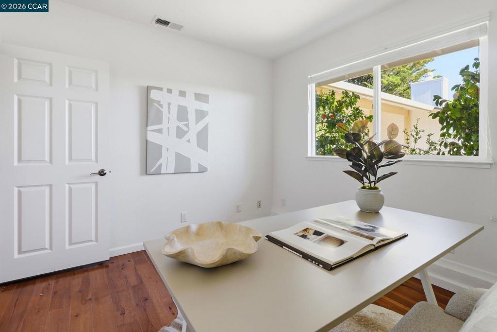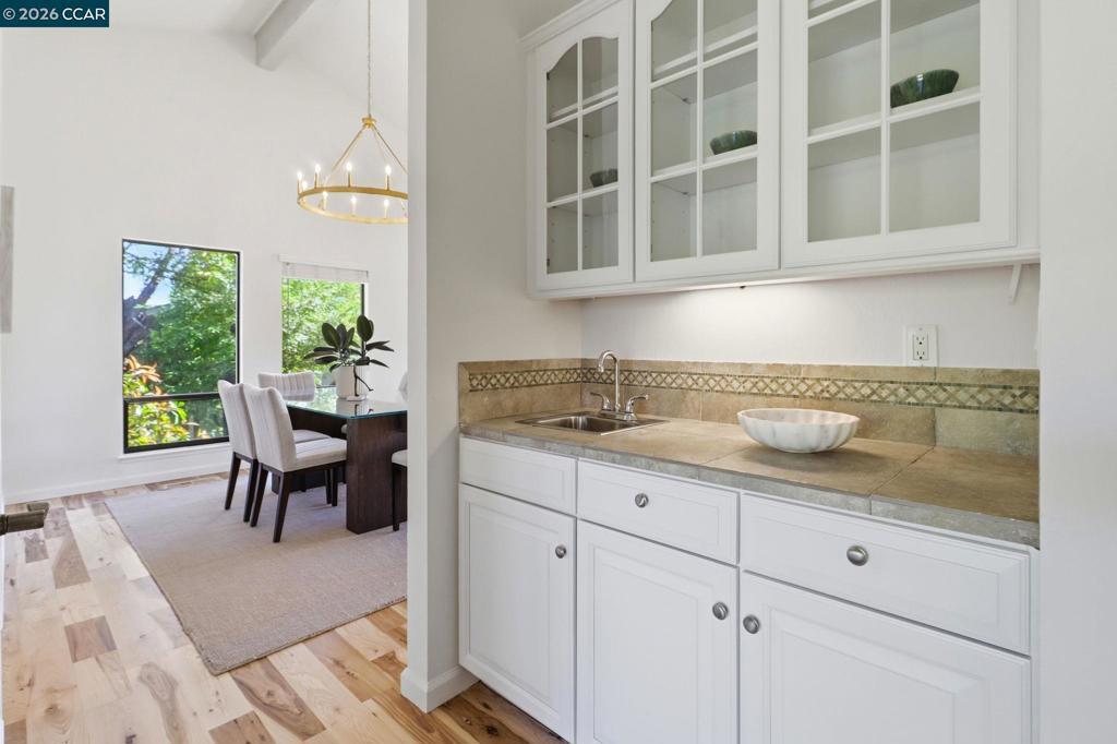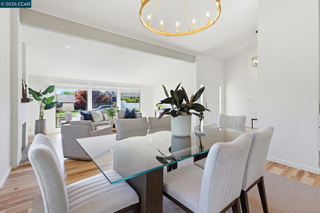 This gorgeous single level home with great views is located on a very desirable court and boasts a great curb appeal. The inviting open floorplan provides for easy living with a wonderful flow for indoor-outdoor entertaining. The sun-lit living room with a gas fireplace, hickory floors and high ceiling opens into the dining room. The spacious kitchen with an island boasts white cabinetry, dry bar area and breakfast nook with seating area. The family room is adjacent to the kitchen and provides direct access to the backyard. All bedrooms are located in the residential wing of the residence. The primary suite has a comfortable sitting room and access to a private deck, ideal for relaxation. The primary bathroom was just recently remodeled with a dual sink vanity, stone countertop, large shower and a walk-in closet. Two other bedrooms share a full hall bathroom. There is an additional office featuring built-in cabinetry & hardwood floors overlooking the courtyard. The amazing grounds are professionally landscaped with several beautiful venues, seasonal flowers, blooming plants, fountain and amazing views. Welcome to Moraga, a great community with award winning schools, parks, hiking & biking trails and the locals favorite Sunday Farmers Market!