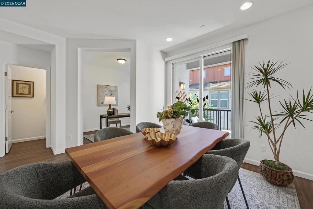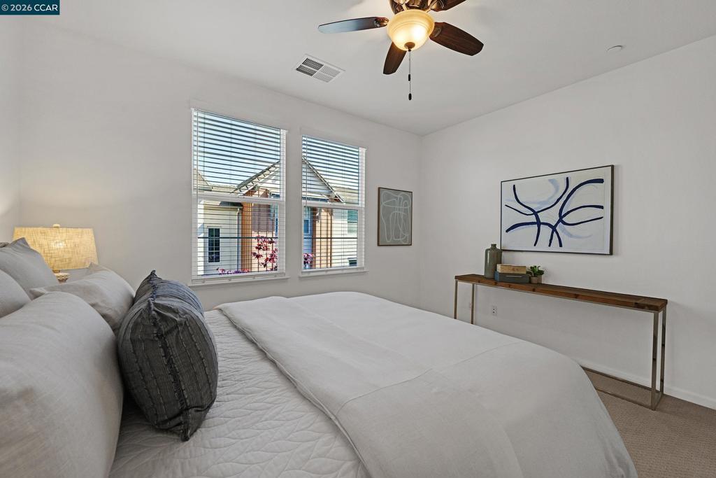 This stylish, NORTH facing, move-in-ready townhouse-style condo offers 3 en suite bedrooms for ultimate comfort and privacy plus office and 3.5 baths. The first floor features a private bedroom and full bath with walk-in closet—ideal for remote work/multi-generational living or guests. On the second floor, you’ll find an inviting open-concept living space with wood flooring, a bright living and dining area with balconies on both ends and a Chef's Dream kitchen equipped with a gas stove, stainless steel appliances, upgraded cabinetry and a spacious island. On this level is also an office and half bath. The third floor has a generous primary suite with walk-in closet, dual vanities, and shower plus an additional bedroom en suite. The third floor hosts a generous primary suite with a walk-in closet, dual vanities, and a walk-in shower, plus an additional bedroom en suite. Located just .2 miles from Cottonwood Creek School, little over a mile to Emerald Glen High School, and close to Fallon Sports Park, shopping, dining, freeway access, and major employers, this home blends convenience with modern comfort. A perfect blend of style, versatility, and location! Don't miss this opportunity.