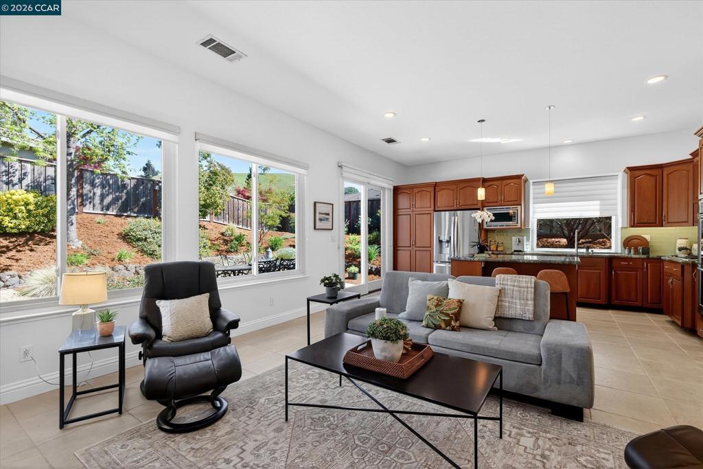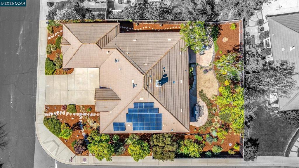 Beautifully maintained single-story home on a spacious corner lot in a quiet cul-de-sac. Charming curb appeal with covered entry, stone-wrapped columns, front porch with sitting area, and landscaped yard featuring mature shrubs and natural stone pathways. Inside offers soaring ceilings, abundant natural light, large picture windows, and an open-concept layout connecting the kitchen, family room and living/dining areas. Kitchen includes granite countertops, stainless steel appliances, a five-burner gas range, double ovens and a center island with seating. The family room features a gas insert fireplace, sliding glass door and custom built-in cabinetry with integrated lighting, display shelving and a built-in desk. Built-in dry bar with glass-front cabinetry and wine refrigerator. Spacious primary suite with private patio access and designer-appointed bathroom with double vanity, glass shower and walk-in closet. Two custom flagstone patios enhance indoor-outdoor living. Additional features include a two-car garage with extra space, laundry room with sink, Hunter Douglas & Graber blinds, Andersen windows, owned solar and newer HVAC. Private backyard with mature trees, a mix of drought-tolerant and traditional landscaping. Ideally located near trails, parks and downtown.
