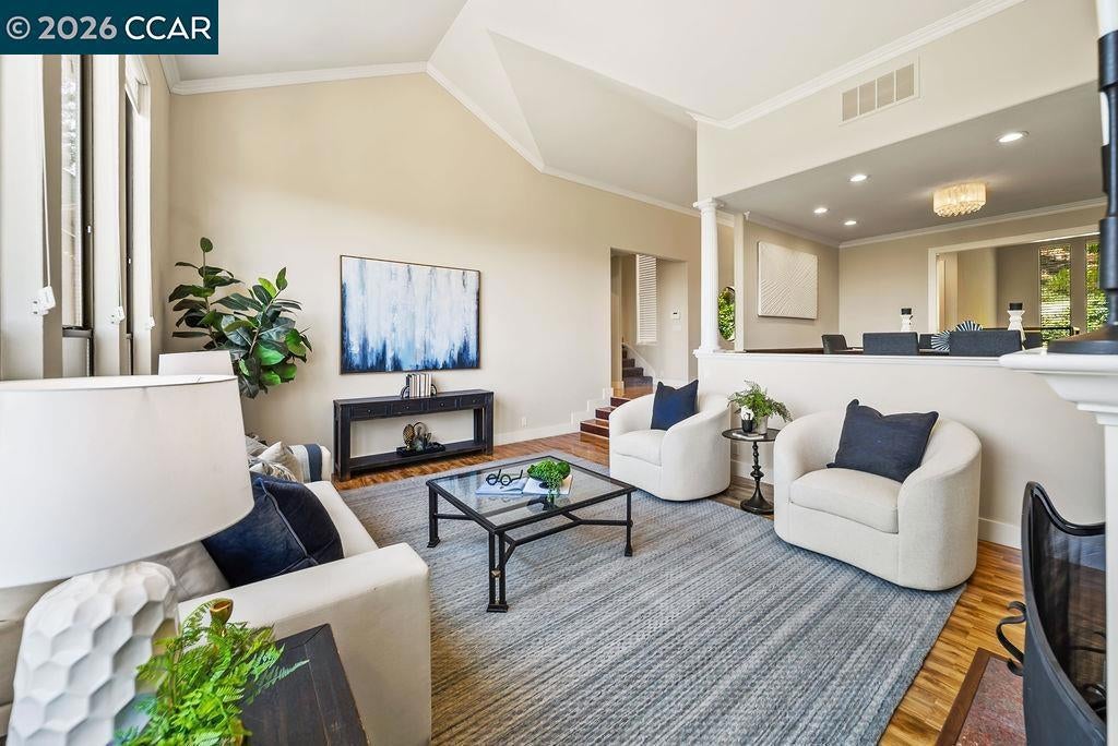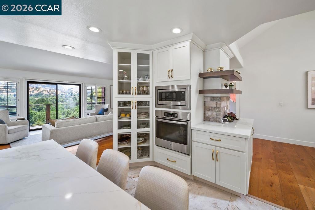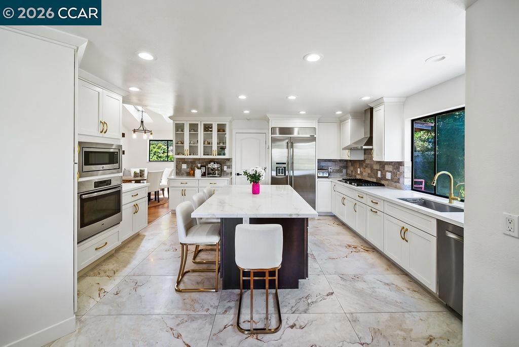 Welcome to 172 Rudgear Rd, where panoramic Mount Diablo views and refined living come together in perfect harmony. Perched on a prime Walnut Creek hillside, this beautifully appointed home offers breathtaking vistas from nearly every room. Inside, you'll find an excellent floor plan designed for comfort and versatility, featuring soaring ceilings, tasteful décor, and two spacious family rooms, ideal for relaxing or entertaining. The freshly updated kitchen shines with new quartz countertops, while the updated baths offer modern elegance throughout. The luxurious primary suite serves as a private retreat, complete with serene views and spa-like finishes. Multiple expansive decks provide the perfect setting for indoor-outdoor living, whether you're sipping coffee at sunrise or hosting gatherings under the stars. With a flat driveway, ample parking, and plenty of level outdoor space, there’s room to create the play yard, garden, or outdoor haven of your dreams. Stylish, spacious, and set against one of Walnut Creek’s most iconic backdrops, this is a home you won’t want to miss.