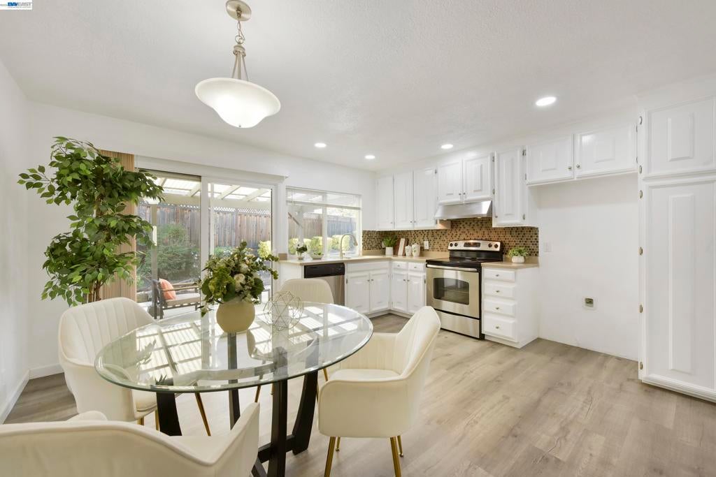 Welcome to 20 Yale Court — a beautifully updated single-story home on a quiet cul-de-sac in the heart of San Ramon. From the moment you arrive, the drought-tolerant landscaping, stone accent columns, and impressive double front doors set the tone for what's inside. The light-filled floor plan features vaulted ceilings, new luxury vinyl plank flooring throughout, and an effortless indoor-outdoor flow. The spacious living room centers around a classic brick fireplace, while the remodeled kitchen shines with white cabinetry, stainless appliances, mosaic tile backsplash, and a sunny dining area with direct patio access. The primary suite offers a ceiling fan, full mirrored wardrobe, and a spa-inspired en-suite with a frameless glass shower, floor-to-ceiling tile, and marble mosaic floor. Three additional bedrooms are bright and well-sized with mirror closets. The hall bath features a granite vanity and tiled tub/shower. Outside, a large pergola-covered patio with year-round usability overlooks a private, low-maintenance yard. 2-car attached garage with built-in storage completes this turnkey home. Served by the award-winning San Ramon Valley Unified School District — minutes from City Center, parks, and major commute corridors.