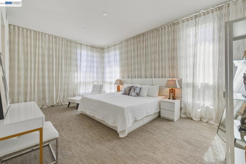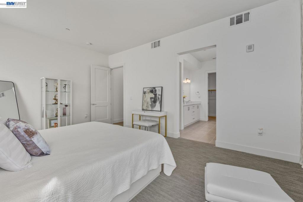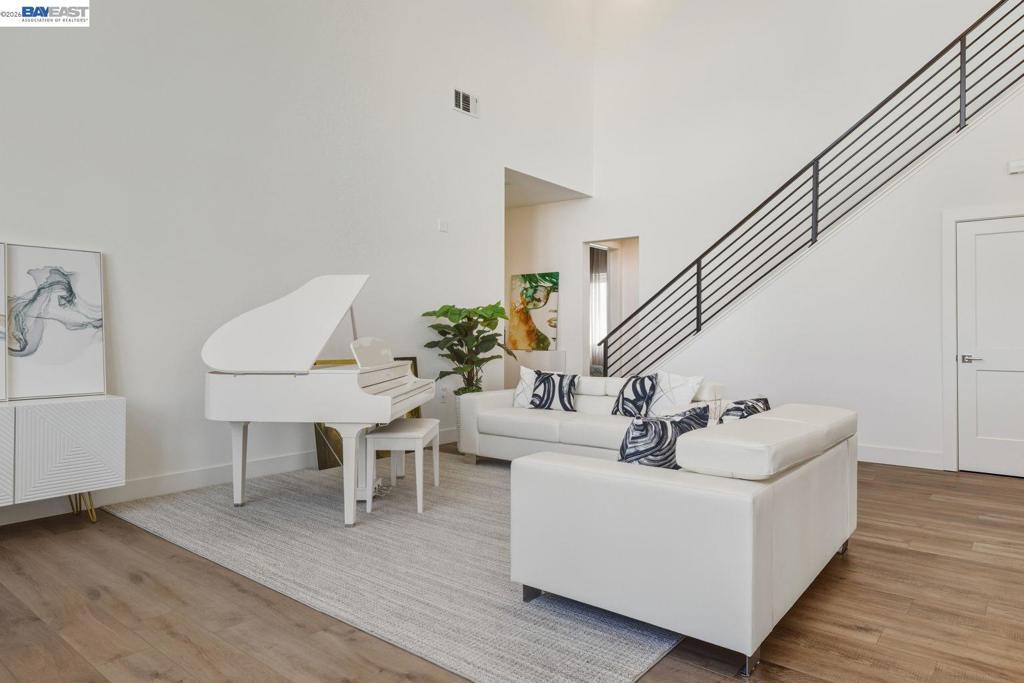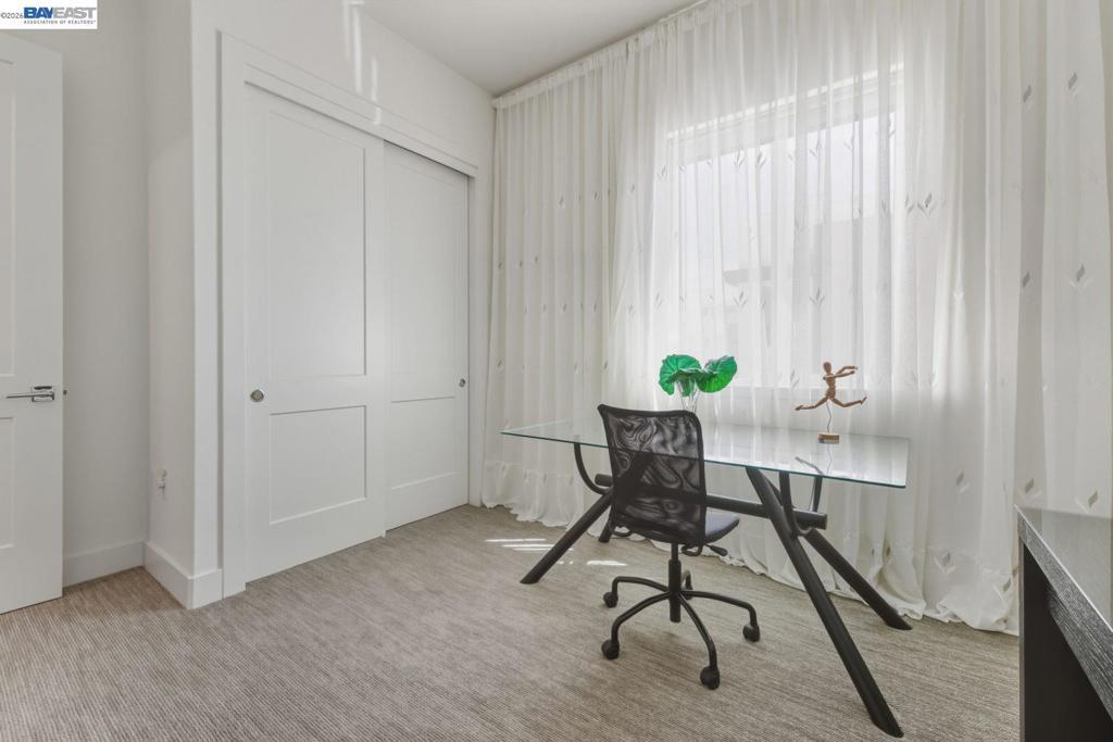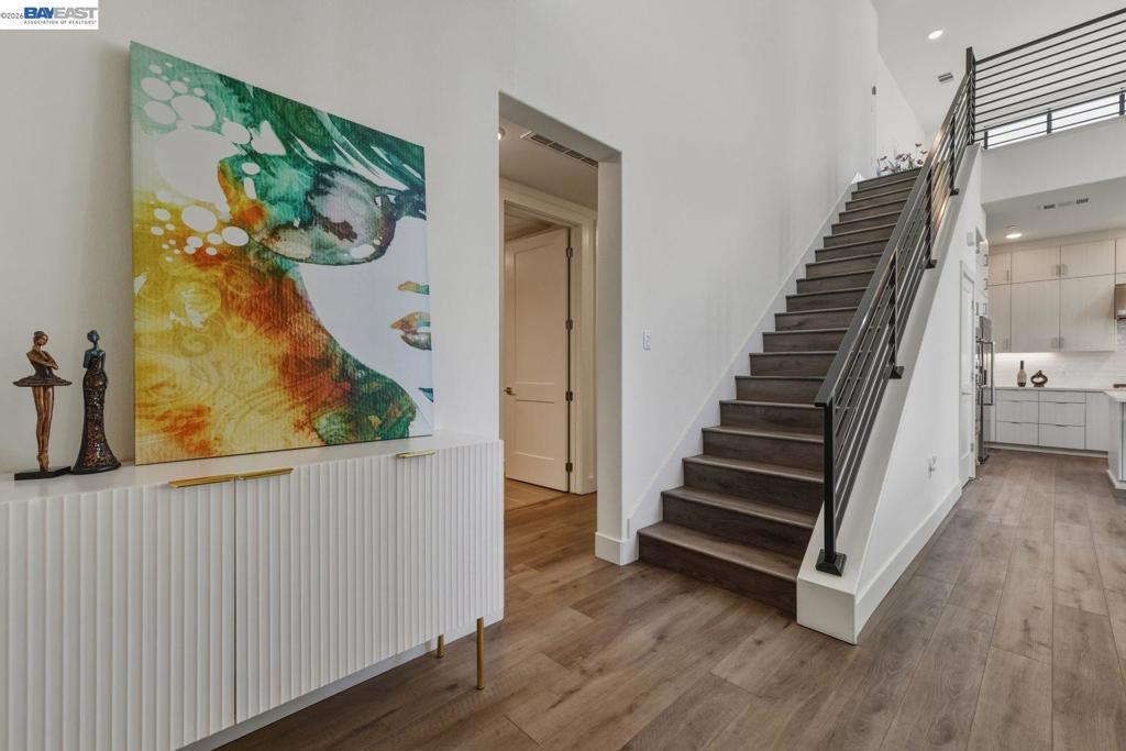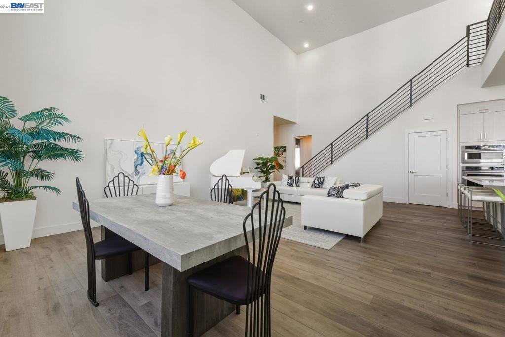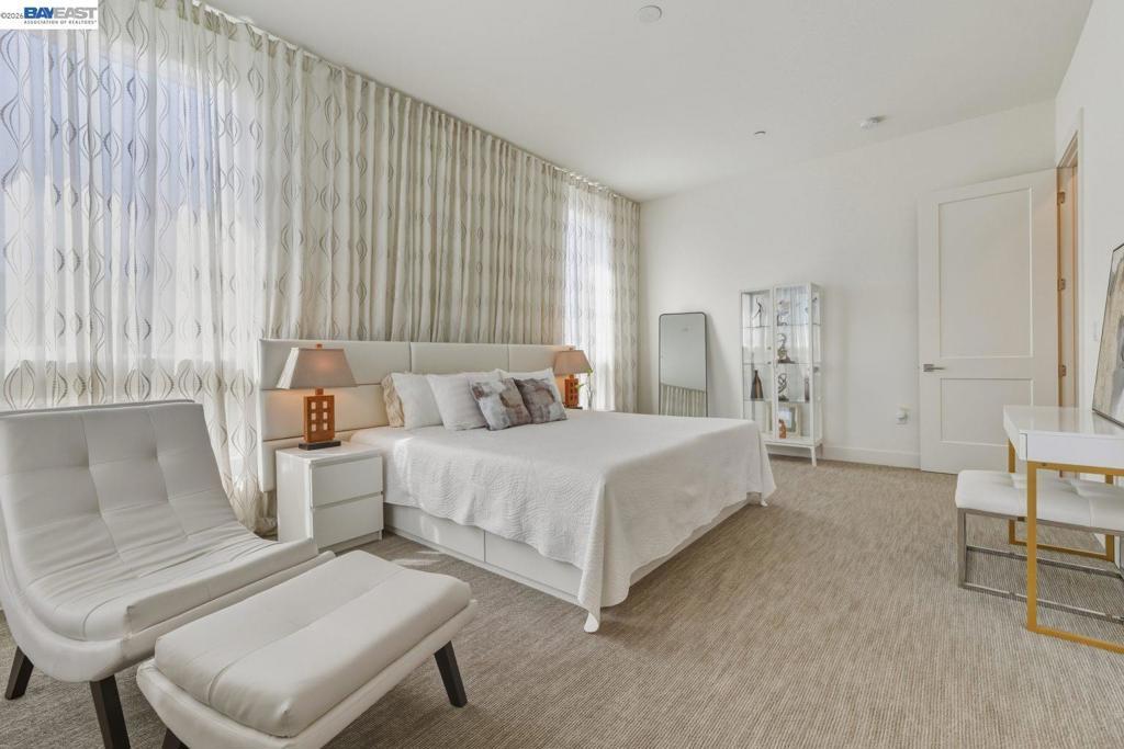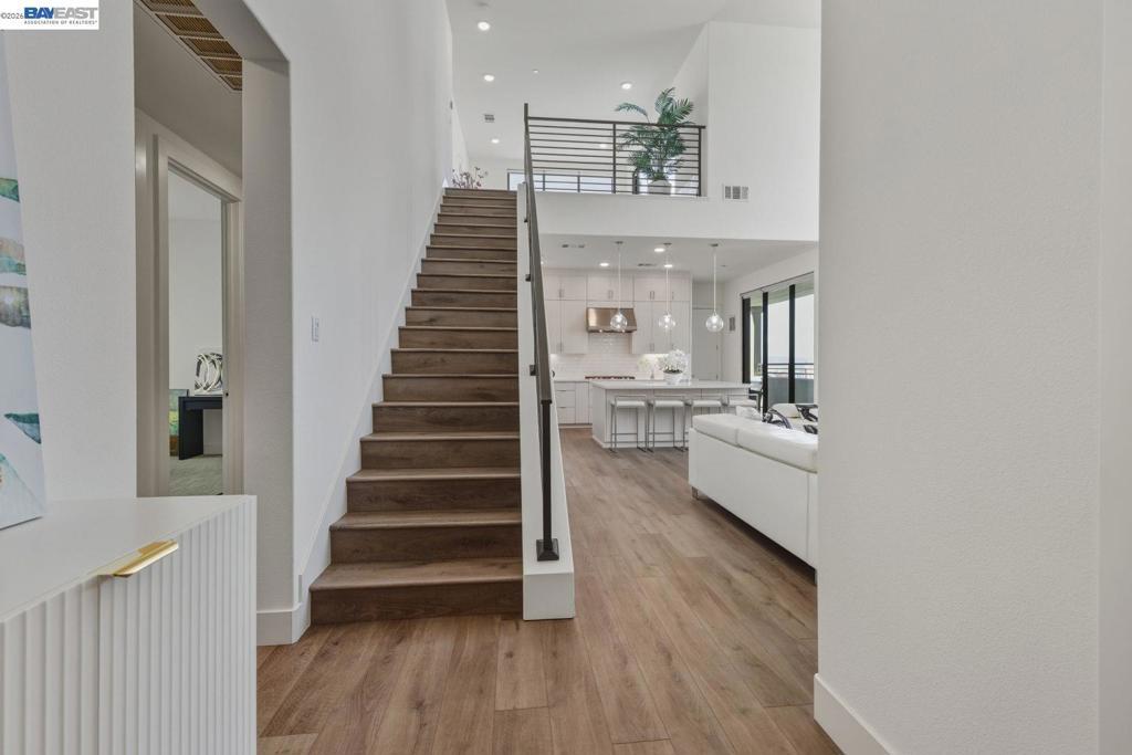 Welcome to this exceptional penthouse at Metro Crossing, offering 3 bedrooms, 2.5 bathrooms, and a deluxe second-floor loft featuring two large sliding doors that enhance the indoor-outdoor experience, all in a quiet, premium community location. Soaring ceilings and an open-concept layout create a spacious and comfortable living environment. Thoughtfully upgraded to the highest level offered by the builder, including premium flooring, staircase, countertops, and bathrooms. Elegant window treatments throughout range from long, flowing curtains to chic window shades. A 220V outlet in the garage is ready for EV charging. Enjoy multiple private outdoor spaces, including a rooftop deck with scenic views and a wraparound balcony with sliding doors and an outdoor fireplace, ideal for seamless indoor-outdoor living. This residence offers enhanced privacy with only one shared wall, along with a private side-by-side two-car garage. Conveniently located near Warm Springs BART and Highways 680 and 880, with access to resort-style amenities including a pool, spa, fitness center, and clubhouse at Metro Crossing