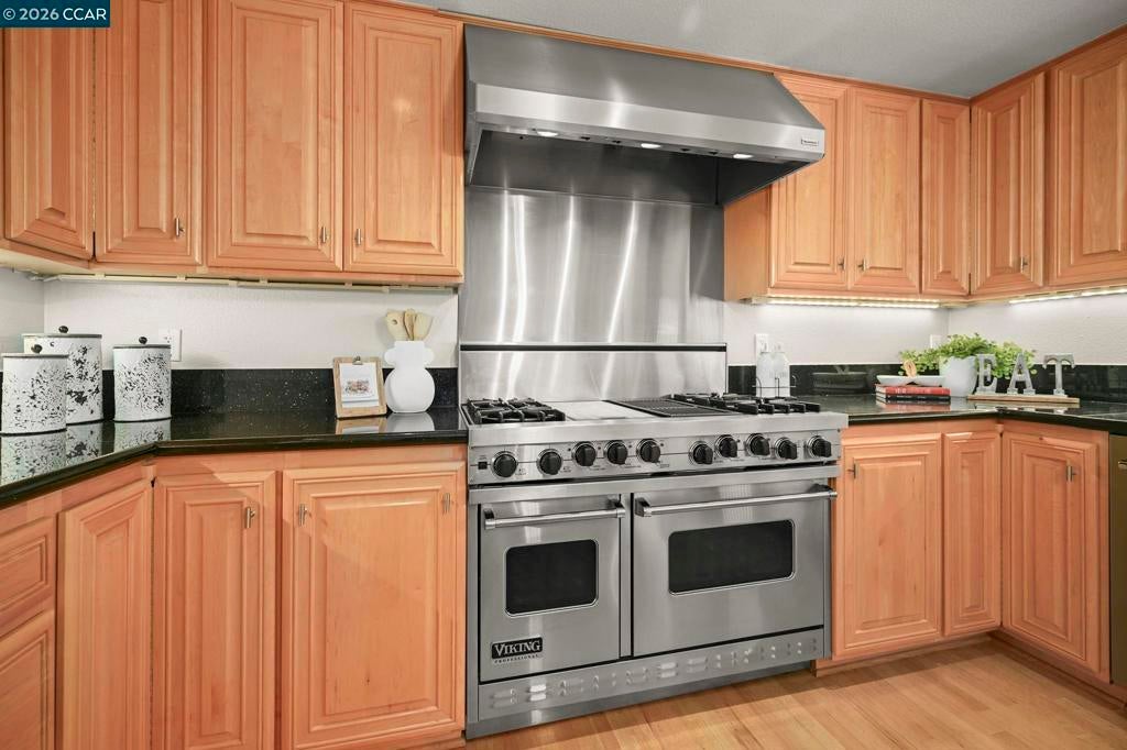 Located in one of Danville's sought-after neighborhoods, 216 Royal Saint Court is ready for you to call home! This expanded home sits on a quiet court near a greenbelt and features hardwood floors, fresh paint, newer carpet, newer windows, and a new water heater. Pride of home ownership shines throughout the spacious living areas. The kitchen is fit for a chef with an 8-burner Viking stove, Sub-Zero refrigerator, a center island, granite countertops, and opens to the family room. The large sliding glass doors invite you to step outside to a low-maintenance yard, designed for entertaining and relaxation. Enjoy the day sitting at the bar of the impressive built-in BBQ or relaxing in the pool with a retractable cover. The indoor laundry room, one bedroom, and a full bath are located on the main level for extra convenience, with three additional bedrooms and two bathrooms upstairs. Award-winning San Ramon Valley Unified School District.