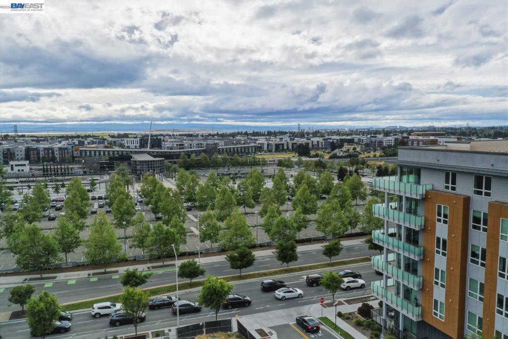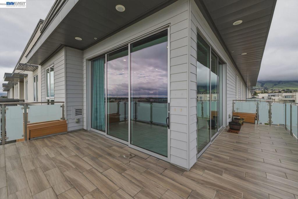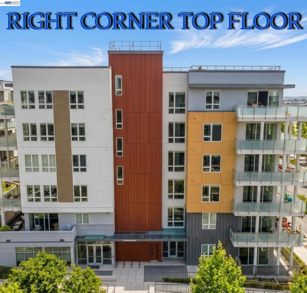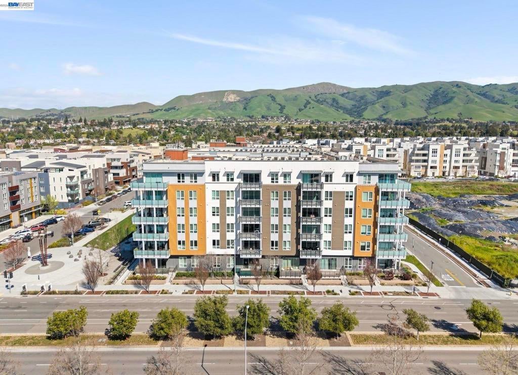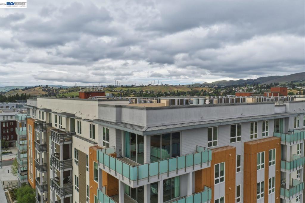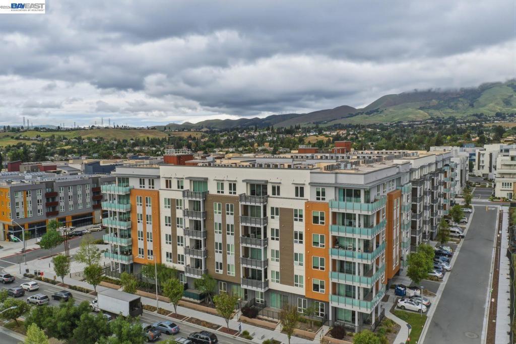 Soaring above the city, this light-filled Top floor corner penthouse showcases panoramic hillside views and a seamless indoor-outdoor lifestyle. Floor-to-ceiling windows flood the space with natural light, while the expansive wraparound balcony offers the perfect setting to relax or entertain. The open-concept design connects the kitchen, dining, and living areas, creating a spacious and inviting atmosphere. A smart split-bedroom layout ensures privacy, with a luxurious primary suite featuring a walk-in closet, dual vanities, and a large walk-in shower. A secondary suite works perfectly as an office or guest room, while the third oversized bedroom is privately positioned—ideal for extended family or visitors. Upgrades include recessed lighting, A/C, in-unit laundry, and generous storage. Two secure garage parking spaces with a community EV charger for added convenience. Community amenities include a pool, spa, fitness center, clubhouse, BBQ areas, and landscaped courtyards with walking paths. Prime location near BART, freeways, Mission Peak, shopping, dining, and major tech hubs.