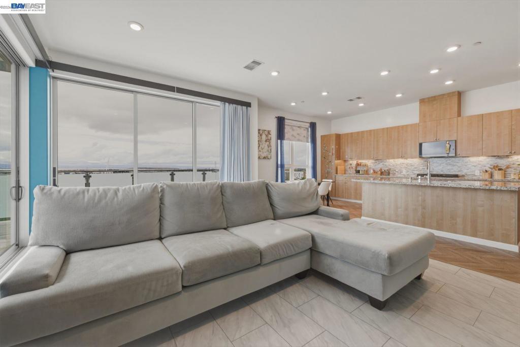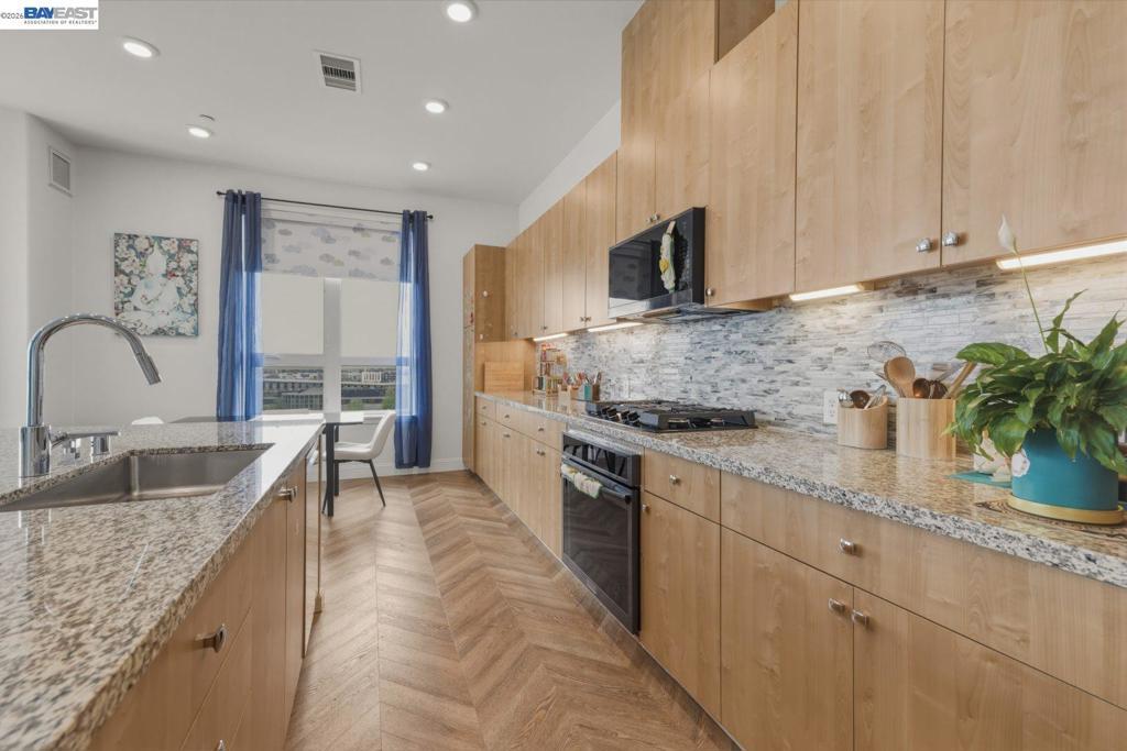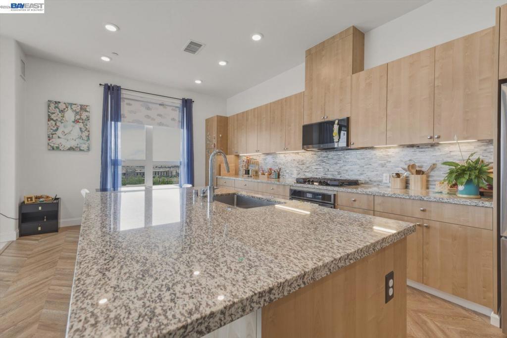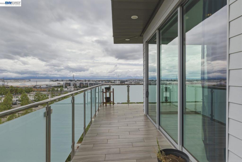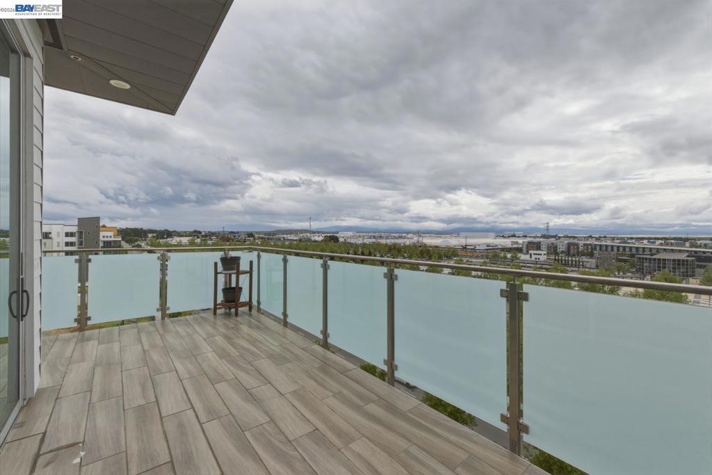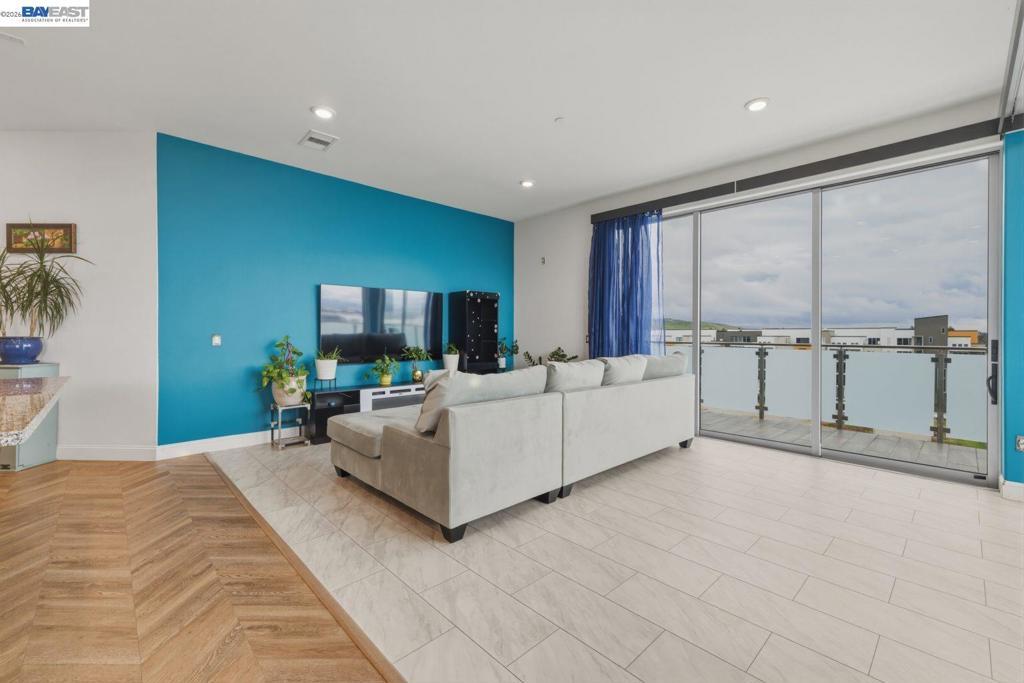 Soaring above the city, this light-filled Top floor corner penthouse showcases panoramic hillside views and a seamless indoor-outdoor lifestyle. Floor-to-ceiling windows flood the space with natural light, while the expansive wraparound balcony offers the perfect setting to relax or entertain. The open-concept design connects the kitchen, dining, and living areas, creating a spacious and inviting atmosphere. A smart split-bedroom layout ensures privacy, with a luxurious primary suite featuring a walk-in closet, dual vanities, and a large walk-in shower. A secondary suite works perfectly as an office or guest room, while the third oversized bedroom is privately positioned—ideal for extended family or visitors. Upgrades include recessed lighting, A/C, in-unit laundry, and generous storage. Two secure garage parking spaces with a community EV charger for added convenience. Community amenities include a pool, spa, fitness center, clubhouse, BBQ areas, and landscaped courtyards with walking paths. Prime location near BART, freeways, Mission Peak, shopping, dining, and major tech hubs.