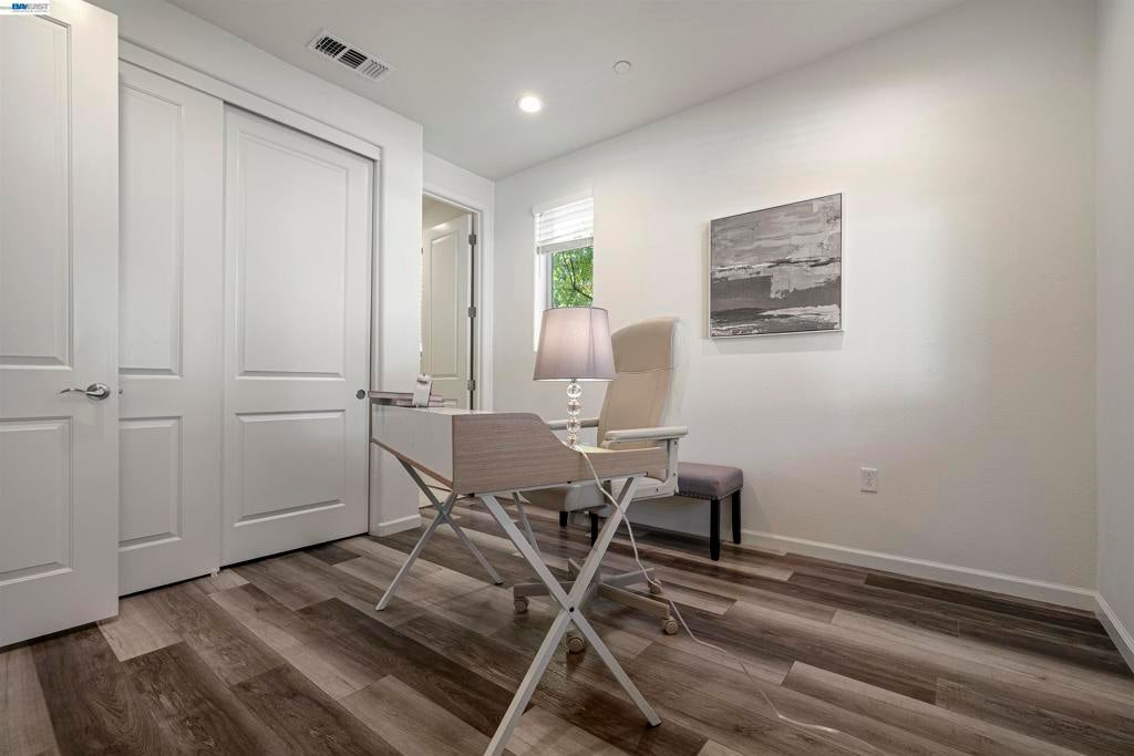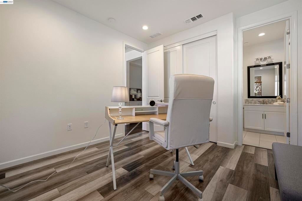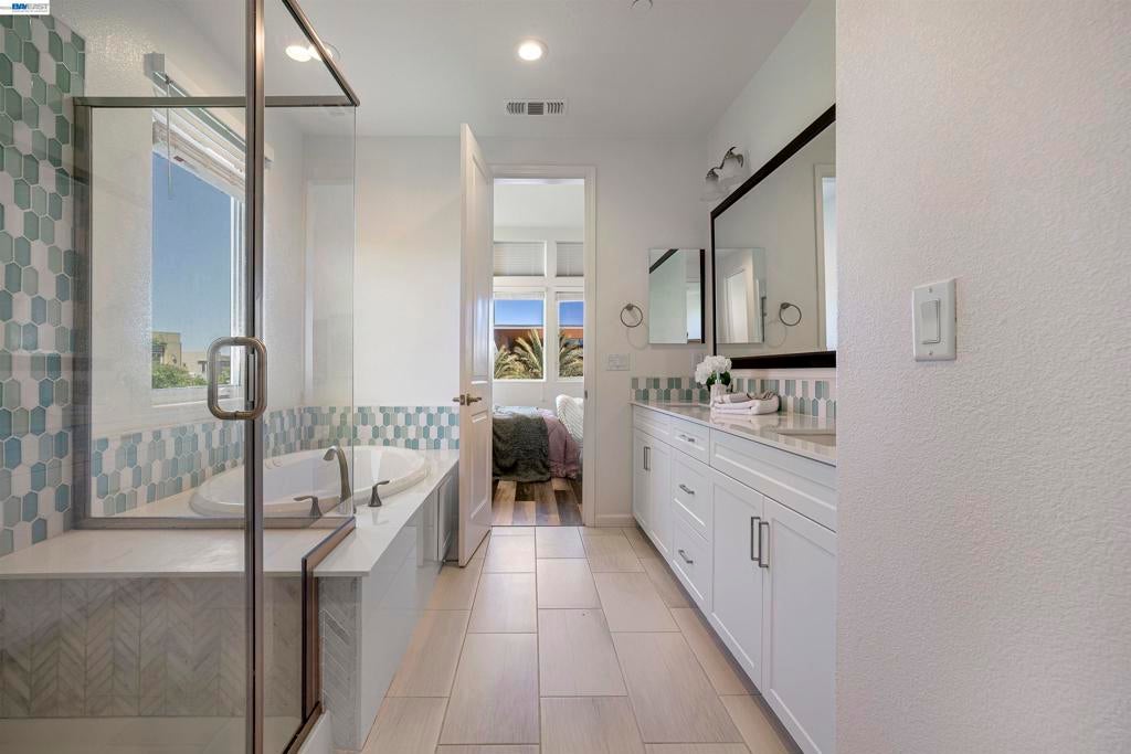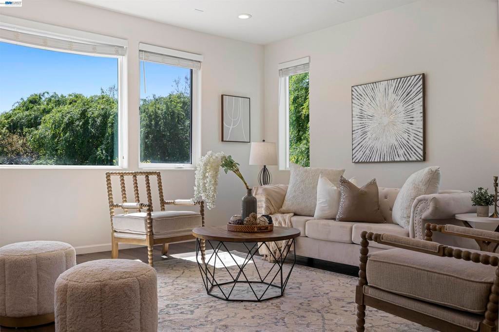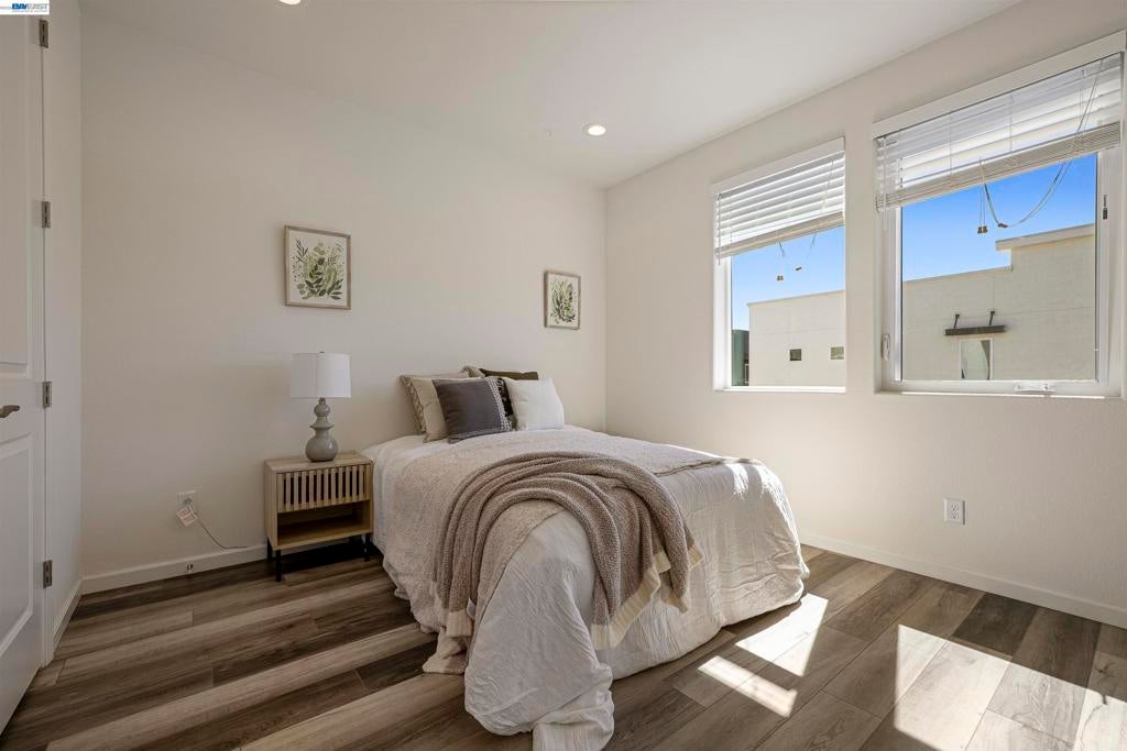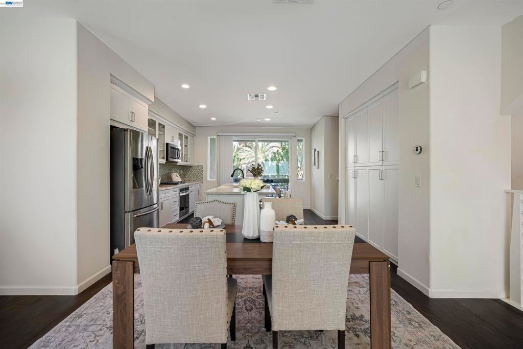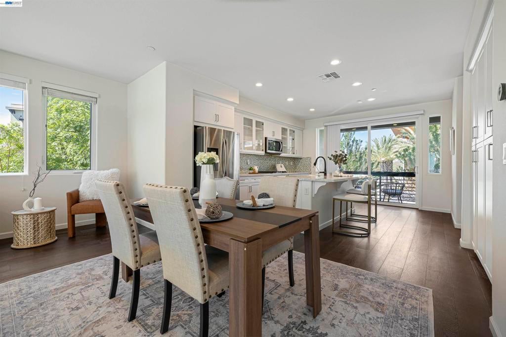 Stunning corner-lot home filled with natural light—truly a commuter’s dream, ideally located right in front of the recreation center. Modern luxury meets everyday convenience in this beautifully upgraded residence offering 3 spacious bedrooms and 3.5 bathrooms, along with an extended living area and an open-concept floor plan. The first floor features a full bedroom and bathroom, a welcoming entry, and a side-by-side 2-car garage.  Hypoallergenic Living: Completely carpet-free with a seamless blend of classic hardwood and high-end luxury vinyl plank flooring. Gourmet Kitchen: Elegant quartz countertops, a timeless porcelain farmhouse sink, and designer glass-front cabinetry. Spa-Inspired Bathrooms: Enjoy a deep-soak Jacuzzi and a premium glass-enclosed shower in the primary suite. 3 stage system including whole-house filtration, a water softener, and reverse osmosis for pure drinking water .Pre-wired for a multi-zone AV receiver and satellite integration. EV Charging Ready: Garage equipped for easy electric vehicle charger installation. Pool, clubhouse, gym, pool table, BBQ areas, and the expansive 32-acre Bridle Park with basketball courts. Convenient freeway access, walkable to BART, and close to anew Shamrock Hills TK8 school. MUST SEE HOME!
