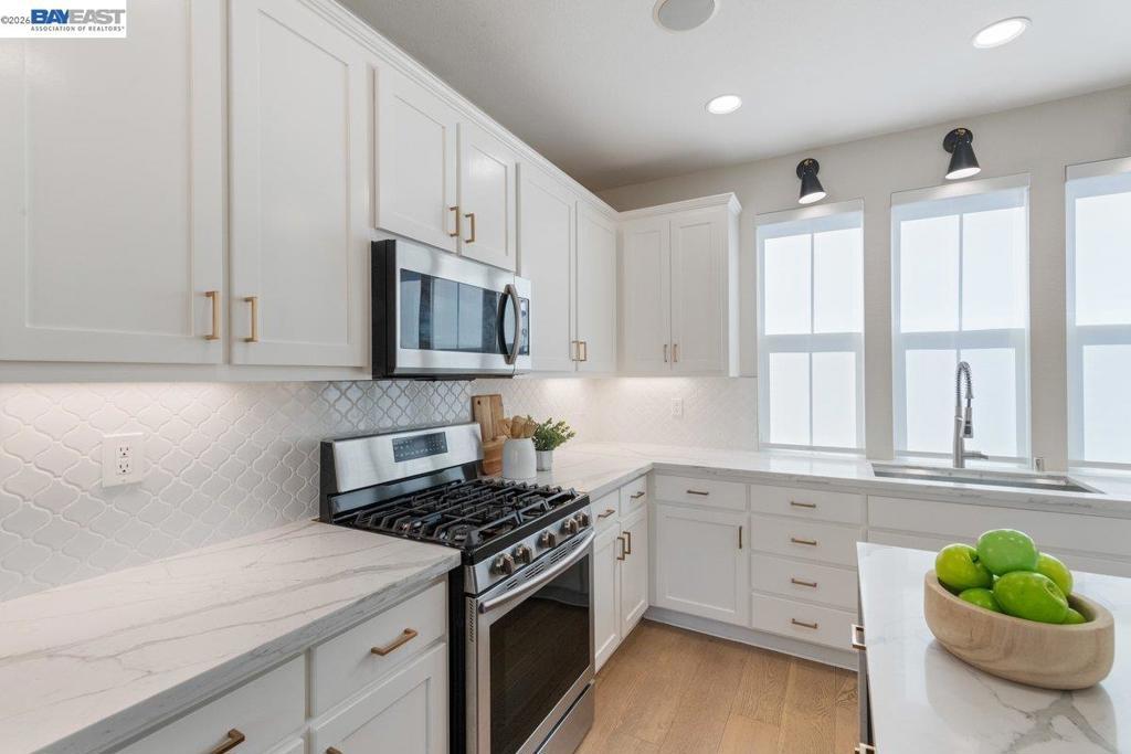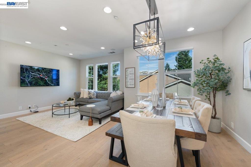 NE Facing, Rare Opportunity to own a Gorgeous Model like home in an Ideal Location in the Beloved Silvera Ranch community in East Dublin with TOP rated Schools! Home is Loaded with every Imaginable Upgrade and is just Steps away from the community park, clubhouse and just a 2 minute walk to the Brand New 13 acre Dublin Park. The Most Popular Floor Plan with a Spacious & Bright Great Room, Chic Dining, & a 'Wow' Kitchen with Waterfall Island, Modern White Cabinets & Classy Quartz Countertops. You'll also Love the Tall Ceilings with the Exquisite Chandelier showcasing separate Gorgeous Living Room that can also be used for Home Office/MultiMedia Room/Game Room. Primary Bedroom Suite features a gorgeous Spa style bathroom & a built-in closet! Secondary Bedrooms are spacious as well and share a beautifully done bathroom! Additional Upgrades Include: Premium Wood Flooring, Premium Carpet, Elegant Light Fixtures & Recess Lights throughout, Two-tone Paint and much more! Ideal location, close to it all: Top Rated Schools, Gorgeous New Park, Shops, Restaurants & Bart! Do Not miss this one, won't last long!