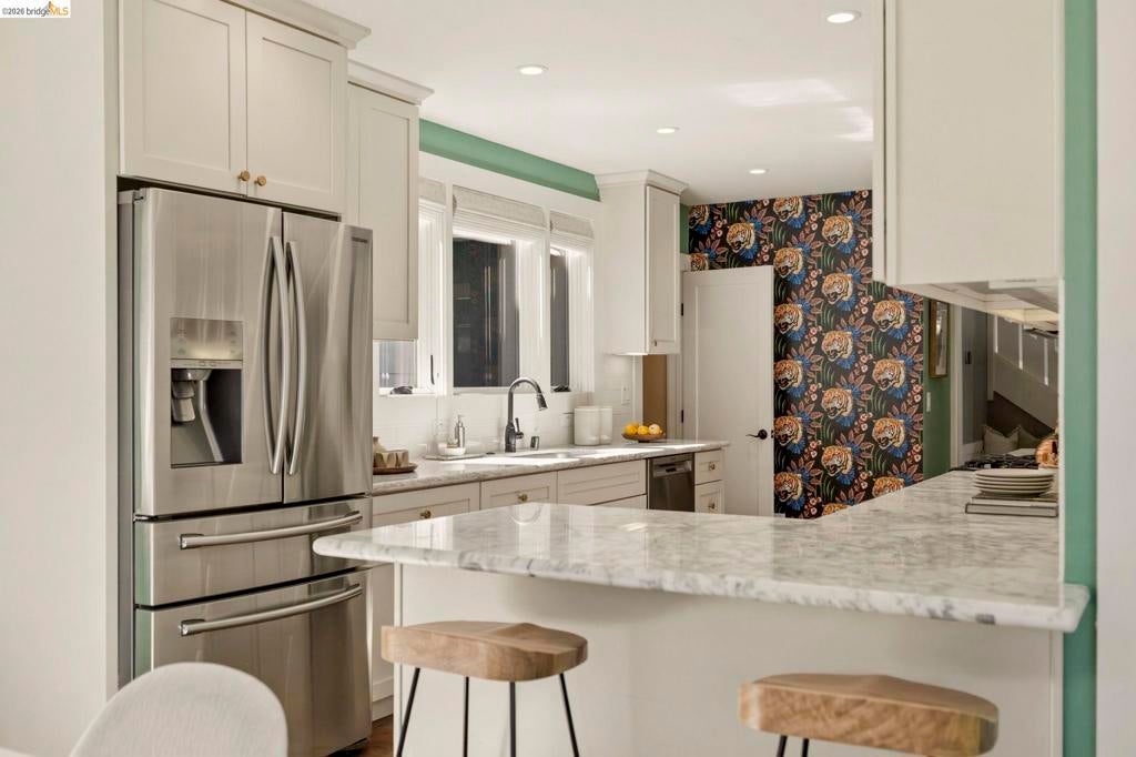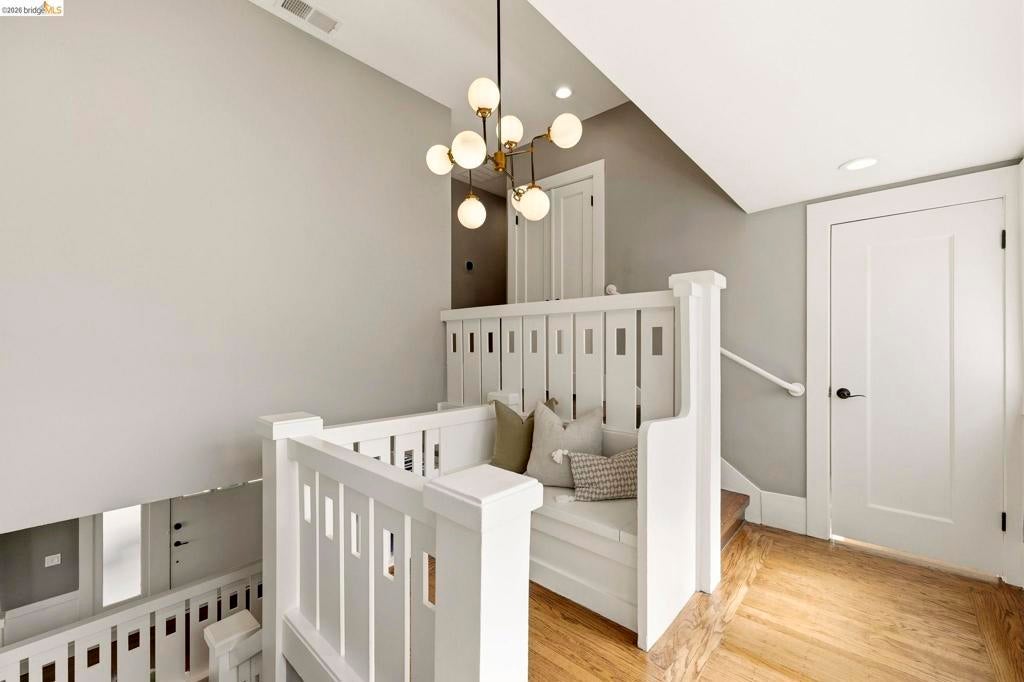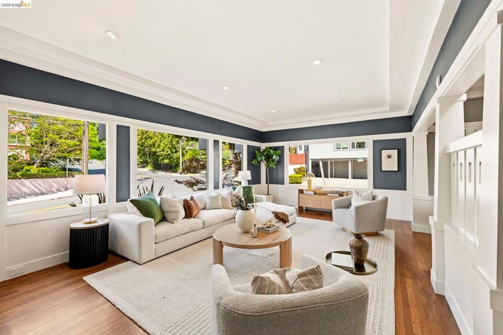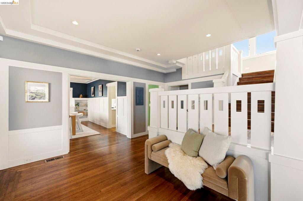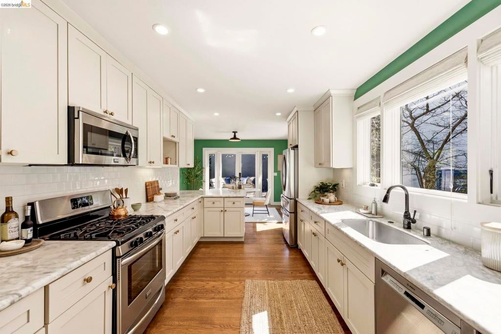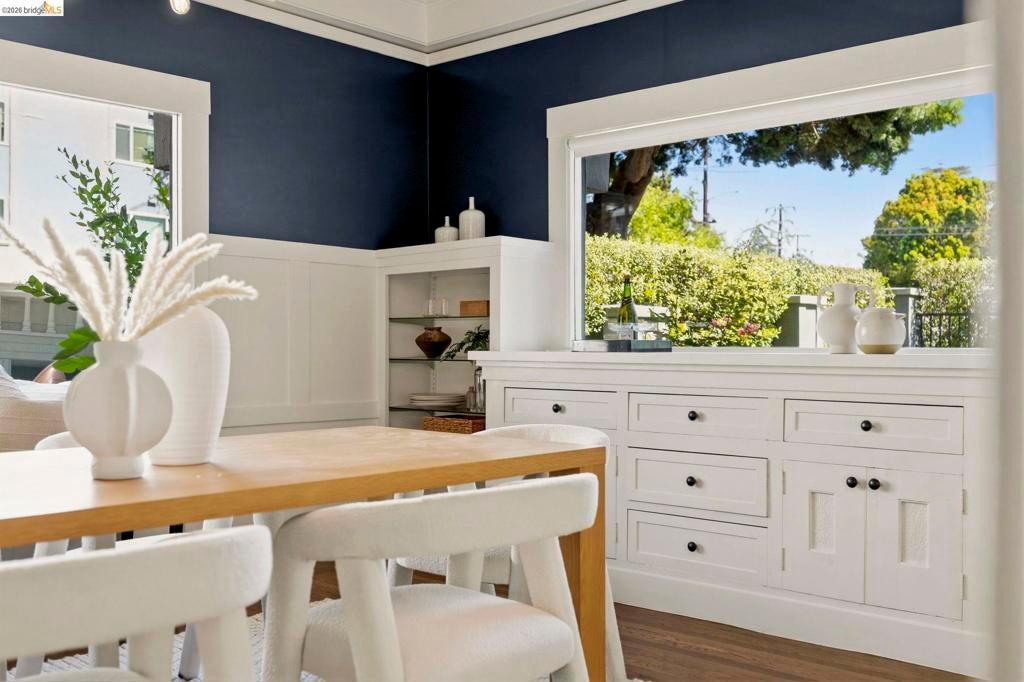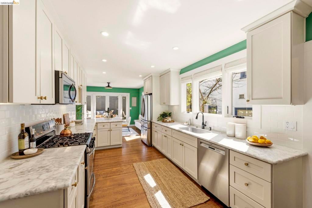 Architectural Craftsman Gem in the Heart of Grand Lake Exquisitely renovated Craftsman blending timeless character w/ modern upgrades in one of Oakland’s most walkable locations, just blocks from Lake Merritt, Whole Foods, Grand Lake, Lakeshore, Piedmont Ave, BART & the Saturday Farmers Market. Original built-ins, pocket doors & a striking Arts & Crafts staircase highlight the home’s architectural detail, while hardwood floors & oversized plate glass windows fill the space w/ natural light. The main level offers seamless flow for living & entertaining, featuring a formal dining room w/ Craftsman built-ins & a designer kitchen w/ marble countertops, stainless steel appliances, bar seating & dining nook. A bold Gucci wallpaper feature wall adds a unique designer touch. Doors off the kitchen open to a private deck & garden, ideal for morning coffee, al fresco dining, or evening gatherings under string lights. Upstairs includes all bedrooms, highlighted by an expansive primary suite w/ balcony, walk-in closet & spa like bath. Two additional bedrooms & a sunroom offer flexible space. Two-car garage, lower-level laundry, gym space, smart thermostat & dual zone heating & AC. Easy access to the Bay Bridge for a convenient San Francisco commute. Open this Sun 2-4:30 pm