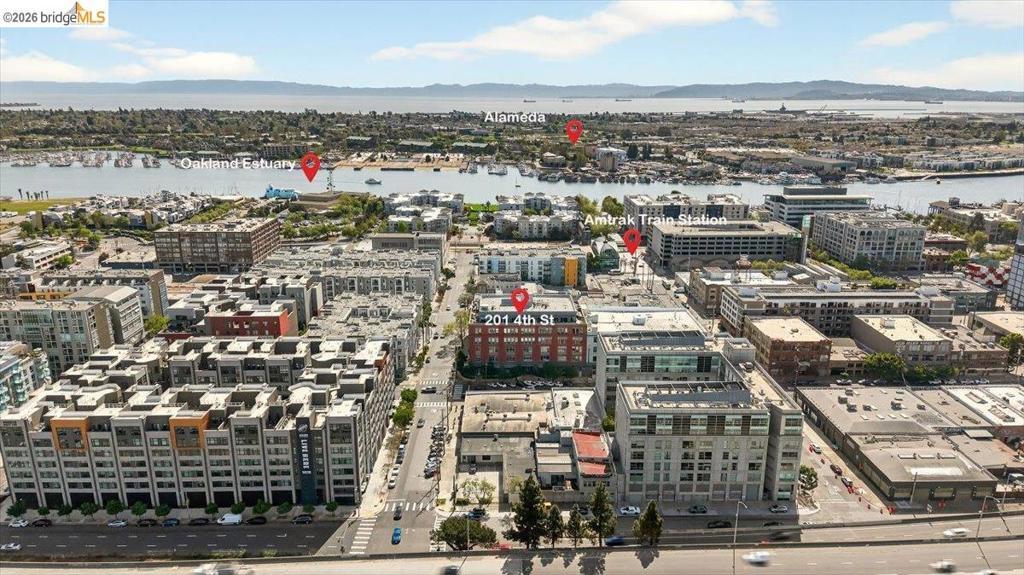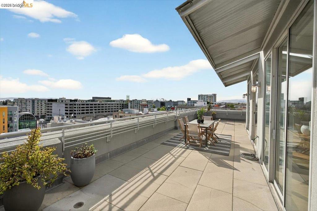 Loft-style penthouse at 201 4th Street #601 in Oakland’s New Market Lofts. This top-floor residence offers approximately 1,360 sq ft of interior space and an generous ~900 sq ft private patio with southwest and northwest exposure, featuring afternoon sun and San Francisco skyline and Bay views. Rare indoor-outdoor living in a prime waterfront location. Interior features include heritage French white oak flooring with oil-rubbed and baked finish, Siemens washer and dryer, Bertazzoni kitchen appliances, Japanese soaking tub and abundant natural light throughout. Additional highlights include two parking spaces and convenient access to BART, freeways, Jack London Square dining, Sunday farmers market, and the ferry to San Francisco.