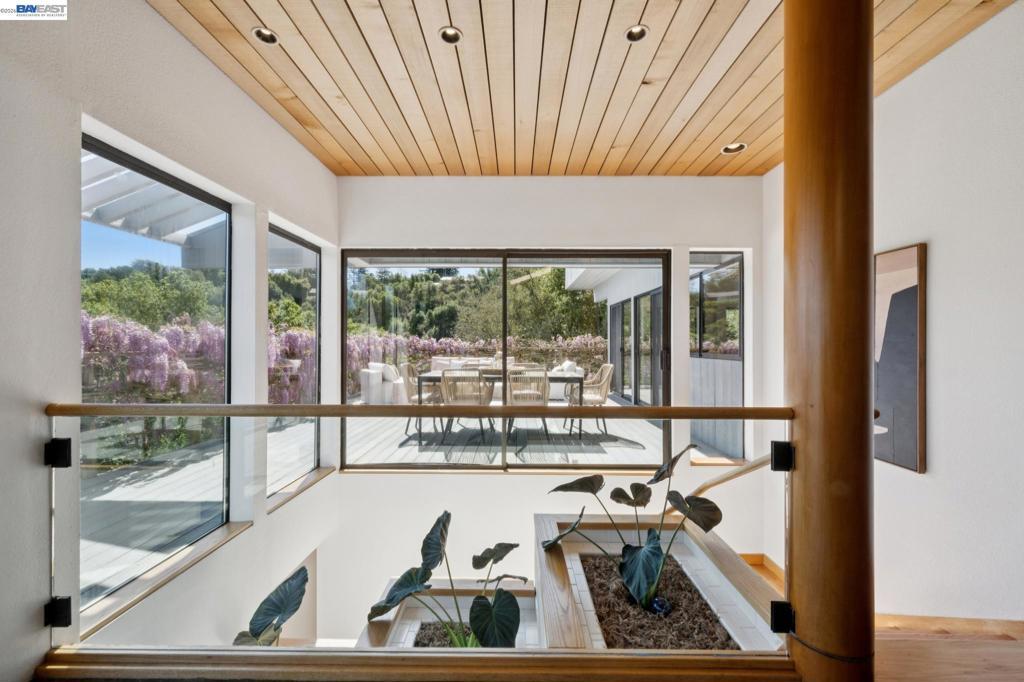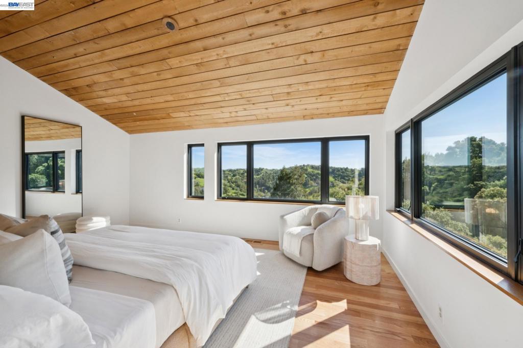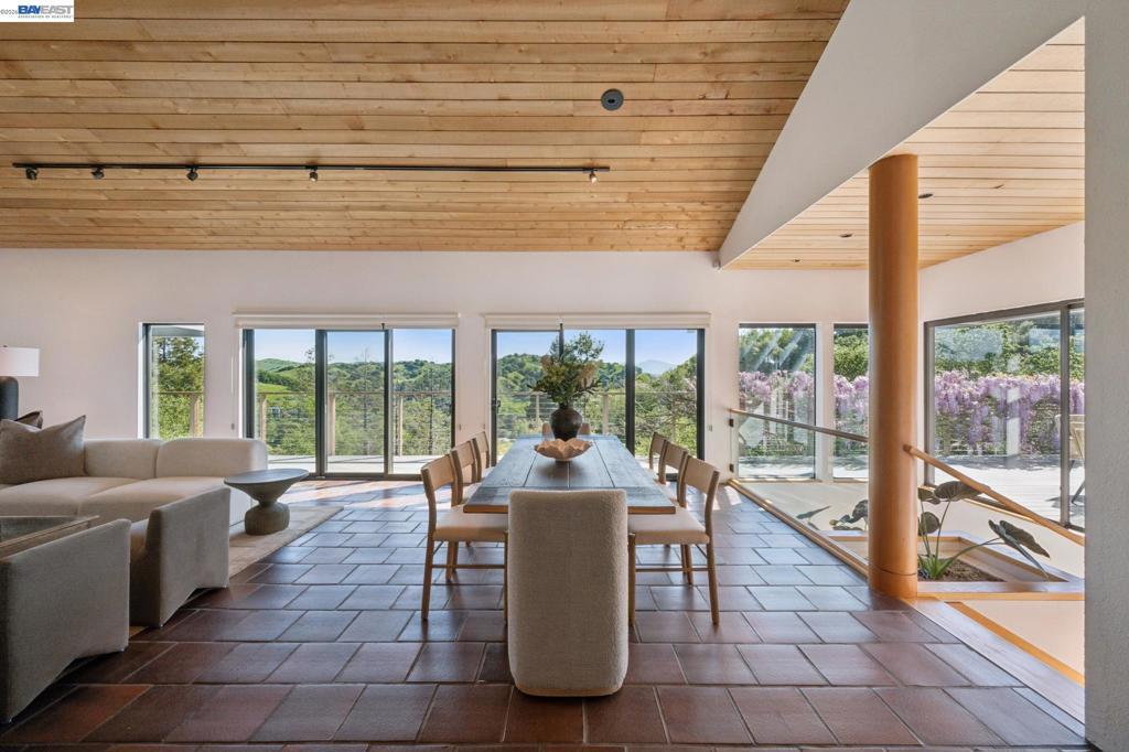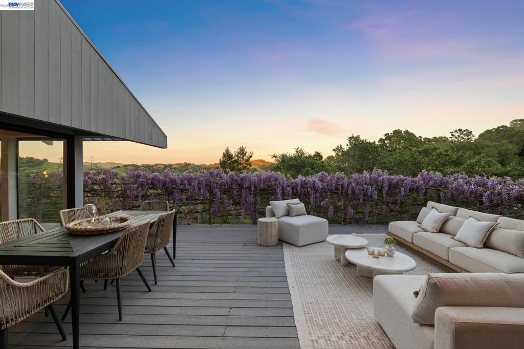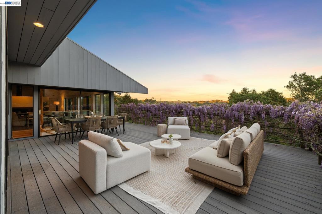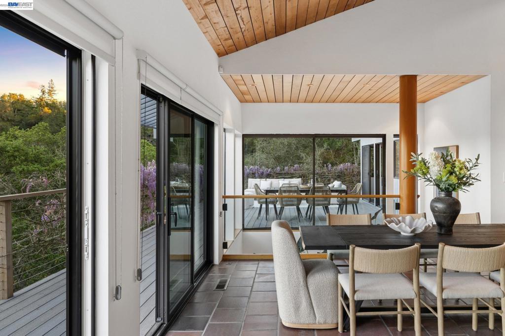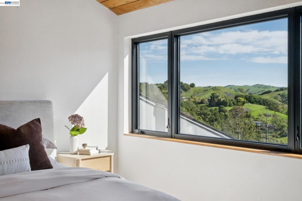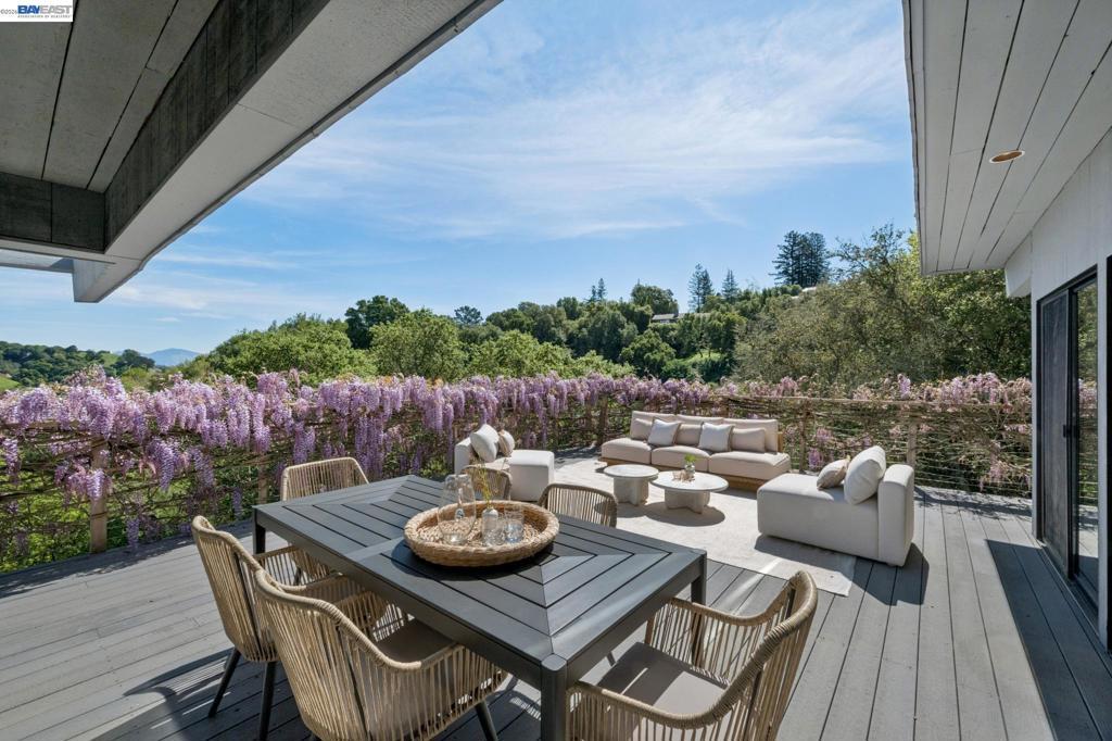 Timeless contemporary design, sweeping views, and exceptional indoor/outdoor living are all here in this sophisticated 4+BD/2++BA Sleepy Hollow estate. Set in coveted Bear Ridge, this contemporary 4451 SQFT home offers serenity, privacy and exquisite vistas on 1.5 acres of oak woodlands. The home opens dramatically to soaring beamed ceilings, sunny skylights, and floor-to-ceiling windows and glass doors, making beautiful Briones and Mt. Diablo views its ever-present backdrop. In the elegant living and dining areas, entertain and relax with family and friends or open the doors to the expansive wraparound deck for al fresco dinners and conversation. The adjoining eat-in kitchen and great room open seamlessly to the deck. The secluded primary suite enjoys a walk-in closet, huge ensuite bath, deck access, and private patio. Upstairs, find three bright bedrooms with full bath and powder room; downstairs are two large flexible rooms with exterior doors, ready for your needs as a playroom, studio, office, or family room. The lower level also provides access to the back yard, another powder room, and an ample bonus storage space. Your commute is easy with a two-car garage and nearby BART and HWY 24. Sought-after K-12 schools, shopping, dining, and entertainment are just down the hill.