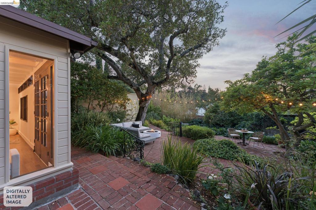 Beloved Mediterranean in coveted Piedmont Pines, just blocks to Montclair Village. This level-in 3BD/3BA home is set within a magical, private garden and offers the best of California living with seamless indoor/outdoor flow—ideal for entertaining, gardening, and play. Dine beneath string lights and a grand oak canopy in the enchanting backyard retreat with 6 fruit trees. The light-filled living room features a coved ceiling with box beams and a cozy fireplace, while the formal dining room overlooks a charming front courtyard. A period-style chef’s kitchen is appointed with oversized windows, custom cabinetry, ample storage, and a delightful breakfast nook. Two bedrooms and two baths are located on the main level. The lower level offers a separate 1BD/1BA suite, both opening to lush, mature gardens—perfect for guests, extended family, or flexible living. Gas line outside for grill. A detached garage, newer paver driveway, and motorized security gate provide convenience and ample parking. Close to top-rated schools, transportation, trails, dining, and shopping.