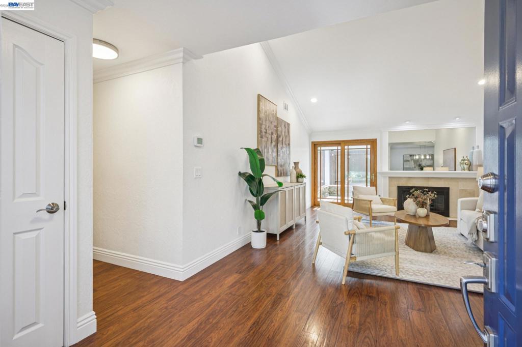 Tucked at the end of a quiet cul-de-sac, this beautifully updated 4 bed, 2 bath single story home offers a rare blend of privacy, comfort, & location, with a park & playground just steps from your doorstep. The ±1,803 sqft floor plan is filled w/natural light & features separate living & family rooms, a formal dining room, & an open kitchen overlooking the family room, ideal for everyday living & entertaining. Vaulted ceilings in the formal living room, family room, & primary suite create an open, airy feel, while rich hardwood flooring enhances the main living areas. Two gas fireplaces & two sets of Andersen doors provide seamless indoor outdoor flow. The updated kitchen features quartz countertops, new appliances, & a casual dining area. Additional highlights include EV charging compatibility & a finished garage with completed walls & black & white laminate flooring. The flat, private backyard offers a large stamped concrete patio w/overhead trellis, ideal for outdoor dining & relaxing. The adjacent park & greenbelt serve as an extension of the yard, while the cul de sac provides space for gathering & play. Located near Charlotte Wood Middle School, John Baldwin Elementary, Osage Park, & the Iron Horse Trl, w/downtown Danville shops, dining, parks, & trails just minutes away.
