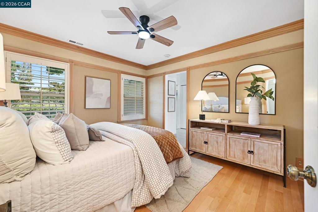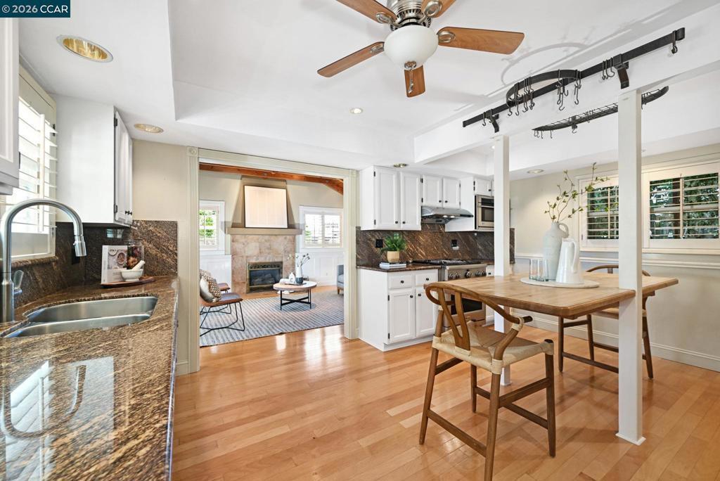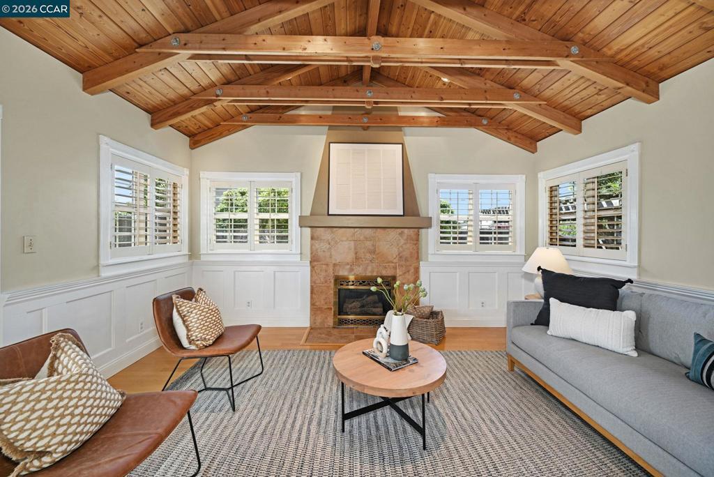 Carmel style charm boasting warmth, character and pride of ownership. This 3-bedroom, 2-bath residence features a spacious bonus room with an open wood-beam vaulted ceiling perfect for relaxing or entertaining. A stunning stone fireplace anchors the living space, while the updated kitchen offers granite countertops, gas range and a special kitchen breakfast bar gathering space for everyday living and hosting. Rich hardwood maple flooring throughout, custom shutters, and multiple French doors fill the home with natural light and create seamless indoor-outdoor flow. The beautifully landscaped front and back yards provide a true retreat. Enjoy a gardener’s paradise and entertainer’s dream backyard, complete with a large deck and integrated evening lighting. Additional highlights include a paver driveway, generous parking, and potential side yard access for RV or extra storage. Lovingly maintained by the same family for over 40 years, this home is ready for its next chapter!