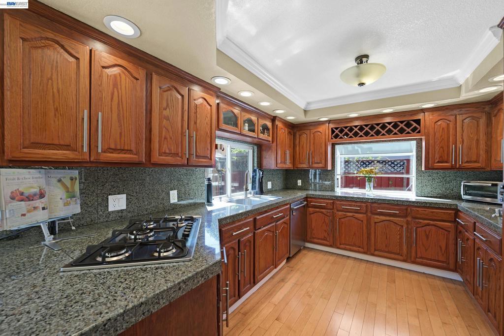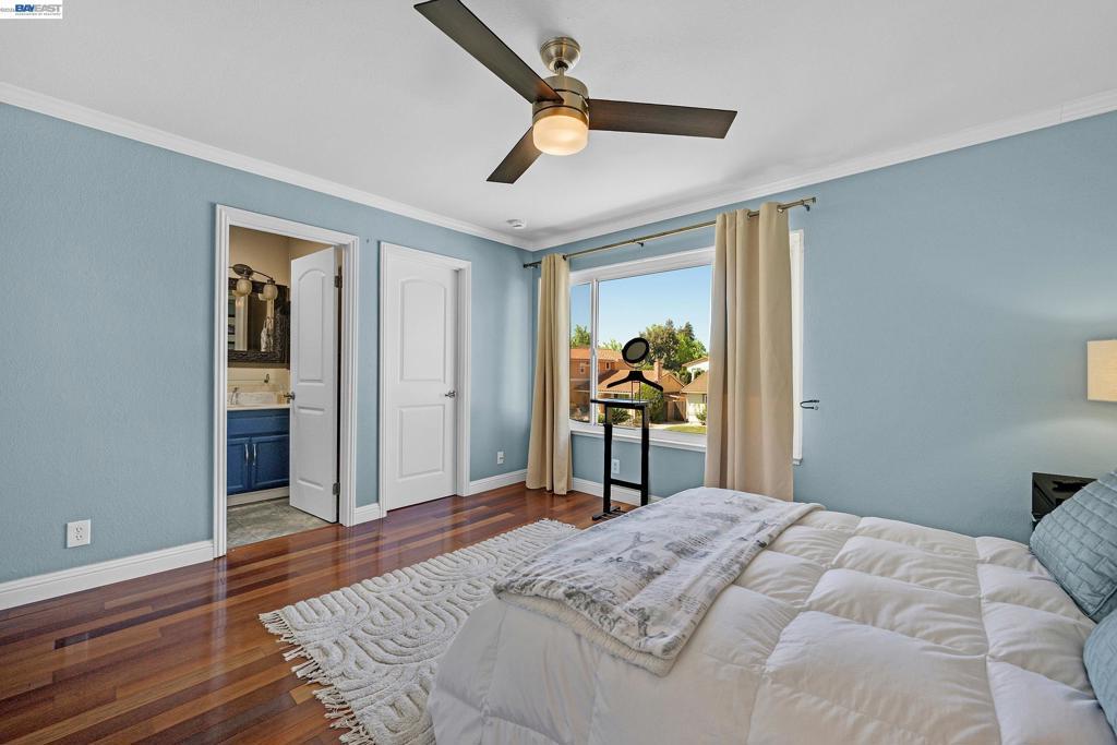 Tucked away in a charming neighborhood and nestled against the scenic Niles Hills, this updated 4-bedroom, 2.5-bath home offers comfort, style, and thoughtful upgrades throughout. Vaulted ceilings, strategically placed sun tubes, and a large skylight fill the home with abundant natural light. The beautifully updated kitchen features a gas range, custom coffered ceiling, and recessed lighting. The spacious primary bedroom includes an updated ensuite bath and walk-in closet. Additional conveniences include inside laundry, wood flooring, central air conditioning, and custom storage cabinets in the garage for exceptional organization. A newer roof adds peace of mind for years to come, and custom crown molding enhances the home’s refined character. The generously sized backyard is ideal for gatherings, complete with a covered gazebo, ample space for entertaining, and gorgeous views of the picturesque Niles Hills. Enjoy the tranquility of being away from the hustle and bustle, while still being close to Historic Downtown Niles with its restaurants, antique shops, farmers market, and year-round community events. OPENHOUSE Sat., April 4th 1-4pm