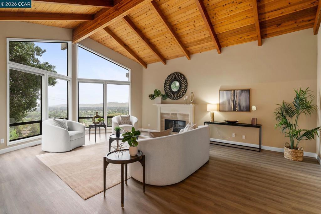 Be prepare to be impressed by this stunning Top-of-the-World home. Offering panoramic views overlooking Clayton & Concord, spanning from Mt. Diablo to the Oakhurst Country Club & from the foothills of Concord all the way to the Benicia Bridge. All on one level with no stairs or step-downs throughout the entire living area. This home offers nearly 4,000 sq. ft. of living space with owned solar. Featuring 4 bdrms (2 of them private ensuites & 3 full baths, 3 fireplaces, 2 large wine refrigerators, expansive living & family rooms and dramatic high ceilings. The oversized kitchen boasts abundant cabinet & storage space, 2 sinks & a massive center island. A stunning octagonal skylit cupola with exposed wood beams adds a truly dramatic focal point. Expansive windows throughout showcase the unparalleled views. Apx .68 acres of unmatched privacy with an impressive elevated setting offers exceptional seclusion. Fully fenced with private gated access, 3-car garage & a separate enclosed 2+ car carport. Additional features include exceptional entertaining decks that nearly surround the entire home & relaxing spa right outside the primary suite. Includes impressive full basement presenting exceptional expansion potential & level lot areas for ADU