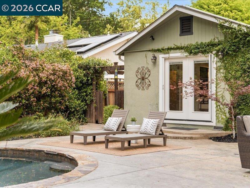 Elevated Pottery Barn charm meets effortless single-story living in this beautifully refreshed Danville home. Newly painted interiors create a light, white, bright, move-in ready feel. Updated kitchen features new quartz countertops, subway tile backsplash, stainless appliances & walk-in pantry, opening to the inviting sun room. Spacious living room with fireplace. The 4th bedroom is oversized & perfect as a bonus room/office or both! Flexible floor plan with space for everything & everyone. Laundry room with ample storage. The backyard is designed for year-round enjoyment with a solar-heated pool, spa, & multiple areas to relax & entertain. Detached pool house/ cottage with full bath, Murphy bed & kitchenette ~ ideal for guests, office, or studio. Circular driveway, charming curb appeal & matching storage shed complete the property. Front landscaping designed with drought-resistant colorful plantings & completely renovated in 2018. Set in a sought-after neighborhood known for its strong sense of community, just moments to downtown, top-rated SRVUSD schools & a short walk to the popular Green Valley Community Pool. Stylish, versatile & perfectly located. Full disclosure package available. Section 1 Clearance. Well-maintained. New HVAC in 2025. New roof in 2021. Many upgrades.
