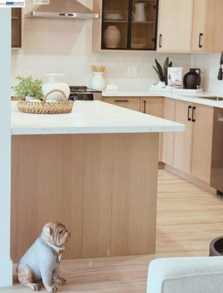 This two-bedroom, two-bath layout has been completely reimagined. The space has been opened and expanded, finished to a level you’d expect in a custom home rather than a condo. Natural light fills the interior through oversized windows. The kitchen flows seamlessly into the living area, anchored by a dramatic island and warm white oak cabinetry. A built-in beverage center adds both style and ease. The enclosed deck creates a bright, flexible space perfect for morning coffee, reading, or a home office. Both bedrooms are calm and spacious, with floor-to-ceiling closet systems that maximize every inch. Two full bathrooms are thoughtfully designed with no compromises. Ground-floor access adds everyday convenience. HOA covers utilities, exterior maintenance, and full access to Rossmoor’s pools, golf, clubs, and vibrant community, making daily living effortless.