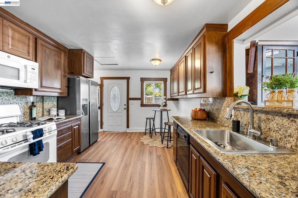 Step into timeless charm with modern-day comfort in this beautifully maintained 1925 Cherryland home! Rich in character, you’ll immediately notice the warm wood detailing, built-in cabinetry, and classic architectural touches that give this home its unique appeal, perfectly paired with thoughtful updates throughout. The spacious kitchen features granite countertops, ample cabinetry, and a functional layout. Adjacent dining and living areas showcase stunning original wood trim, built-ins, and an inviting flow that blends vintage charm with modern style. Natural light fills the home, highlighting the well-preserved details and creating a warm, welcoming atmosphere. Offering 3 bedrooms and 2 bathrooms, this home is both charming and highly functional. Storage is abundant throughout, and the basement opens the door to endless possibilities, whether you envision a workshop, additional living space, or creative studio. Step outside to a fully decked backyard designed for entertaining and relaxation. Enjoy covered seating areas and a dedicated bar space, perfect for hosting gatherings year-round. Not just one, but two driveways provide added convenience and flexibility for parking. This home truly has it all, character, updates, space, and versatility. A must see!