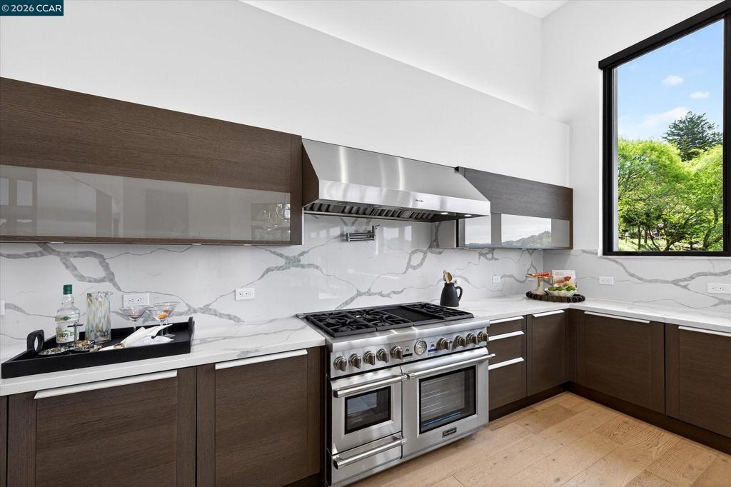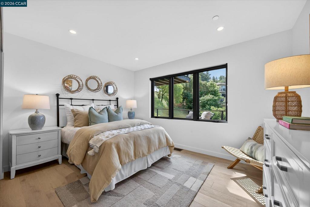 Stunning contemporary state of the art home built in 2020 with gorgeous panoramic views and exceptional craftsmanship throughout. Approximately 3788 sf set on a .47-acre lot with 5 bedrooms and 4.5 baths, including a private 1 bedroom, 1 bath in law apartment with its own outdoor entry plus a main level primary suite and lower-level family room serving the three-bedroom wing. Dramatic great room with soaring 14-foot ceilings, floor to ceiling windows, linear gas fireplace and designer lighting opens to a European inspired gourmet kitchen with premium appliances and custom finishes. Multiple bamboo decks, spectacular views, large level yard, two car garage and minutes to Highway 24. Top schools include Glorietta Elementary, Orinda Intermediate and Miramonte High School.
