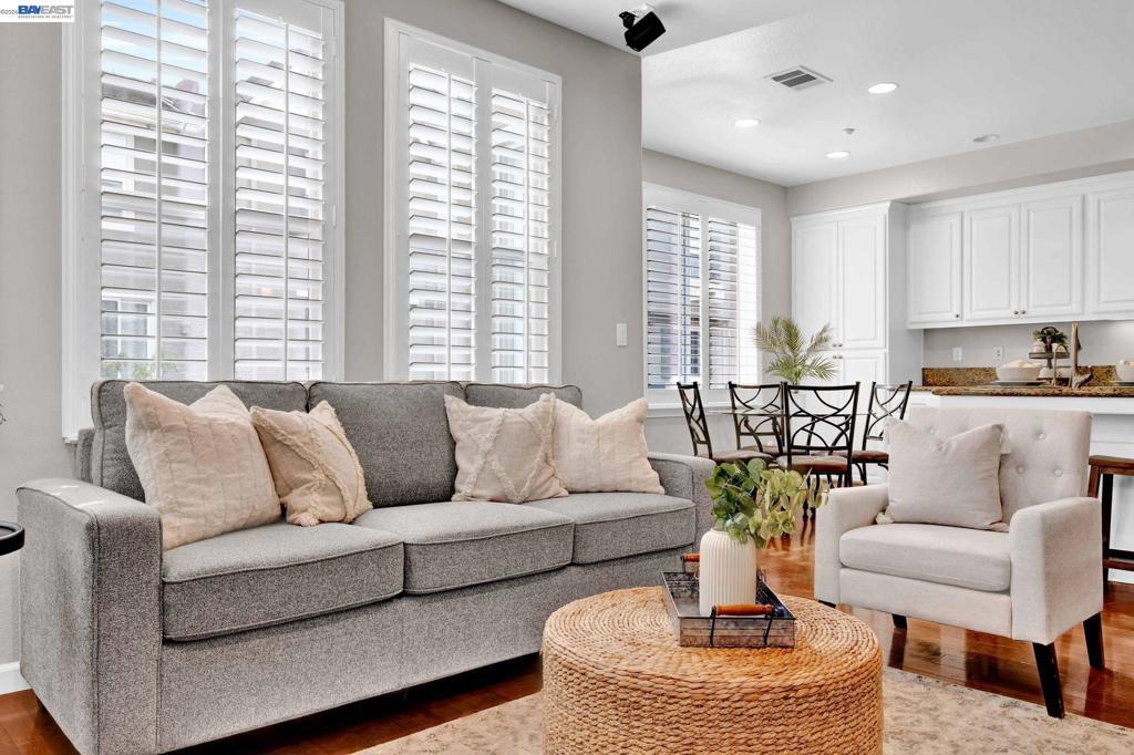 Northeast Facing Windemere Townhome Style End-Unit Condo with Inviting Front Patio, Downstairs Bedroom & Full Bathroom w/Shower. Walking Distance to Live Oak Elementary School and San Ramon Sports Park. Easy Access to Shopping, Restaurants, Parks, Hiking Trails & Freeway. Formal Living Room with Vaulted Ceilings, Formal Dining Room w/Hardwood Flooring, Open Concept Kitchen & Family Room w/Gas Fireplace, TV/Media Niche & Built in Speakers. Chef's Kitchen has Large Island w/Breakfast Bar, Granite Countertops & Backsplash, Reverse Osmosis Water Filter in Double Sink, Stainless Steel Appliances, 5-Burner Gas Range, Pantry Cabinet, Breakfast Nook and White Cabinets. Balcony off Kitchen perfect for morning Coffee or evening drinks. Primary Suite w/Spa like bathroom has soaking tub, shower, dual sinks, walk-in closet with organizers. Two secondary bedrooms share a hall bathroom with shower/tub combo. Finished 2 Car Garage with Storage Cabinets, Water Softener & Epoxy Flooring. Laundry Room w/Ample Cabinets & Counter Space. Enjoy a short walk to the HOA community pool and hot tub, perfect for relaxing all summer long. With easy access to the 580 and 680 freeways, this home is ideally located within a well-planned community—don’t miss the opportunity to make it yours.