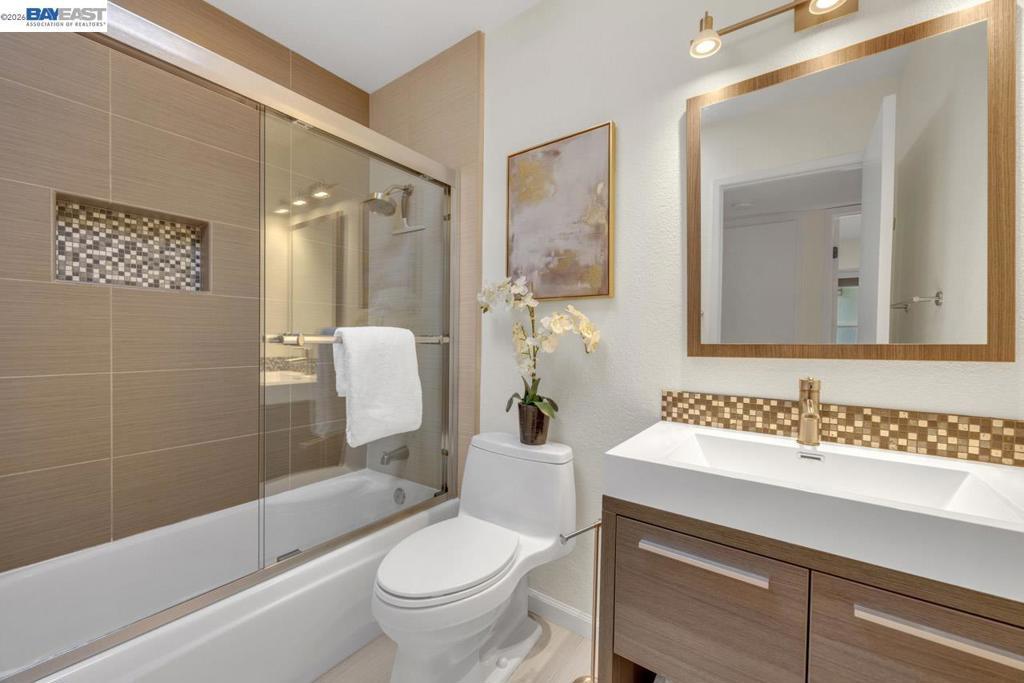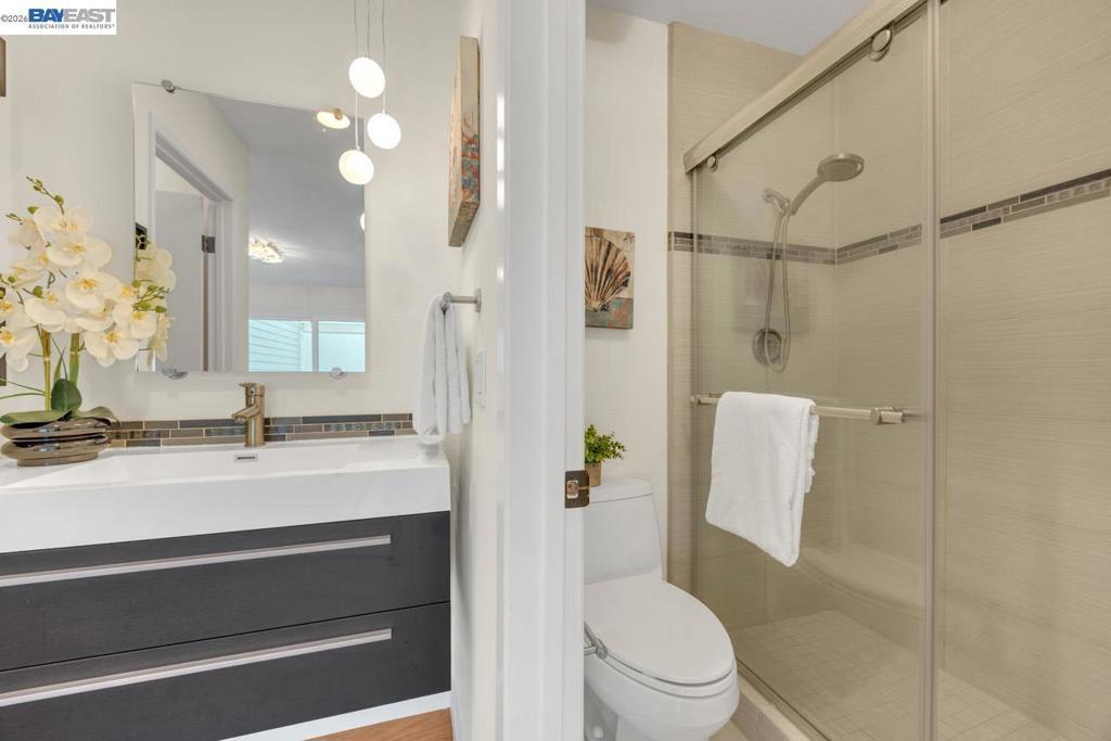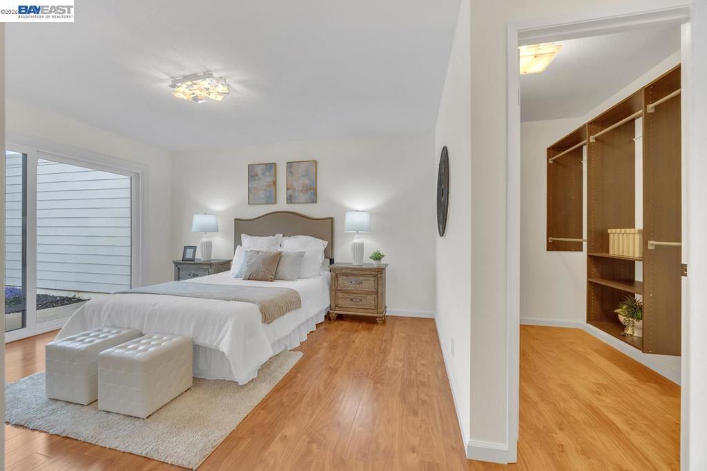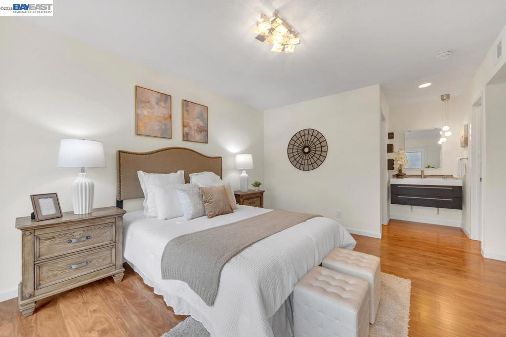 Beautifully remodeled single-family home offering a perfect blend of modern design & comfort. This 3-bedroom, 2-bathroom residence spans 1,246 sq. ft. of meticulously updated living space. As you step inside, you'll be greeted by a bright, airy living room with elegant finishes & recessed halogen lighting. The open floor plan seamlessly connects the living, dining, & kitchen areas, making it ideal for entertaining. The chef’s kitchen features custom contemporary cabinetry, top-of-the-line stainless steel appliances, quartz countertops with extended counter space, & a stylish tiled backsplash. Recent upgrades include new double-pane windows, freshly painted interior & exterior, sliding glass patio doors, a new front entry door, & new siding on the front of the home as well as the rear below the roofline & backyard wall. The home boasts laminate plank flooring throughout, with tile flooring in the bathrooms & laundry room.The bathrooms have been renovated with contemporary fixtures & tiled showers. The home is move-in-ready with popcorn ceilings removed throughout & custom lighting fixtures in the kitchen, dining room, & bedrooms. Enjoy the privacy of a backyard, perfect for relaxation or outdoor gatherings. Just steps from a park & trails, this centrally located Pleasanton home!