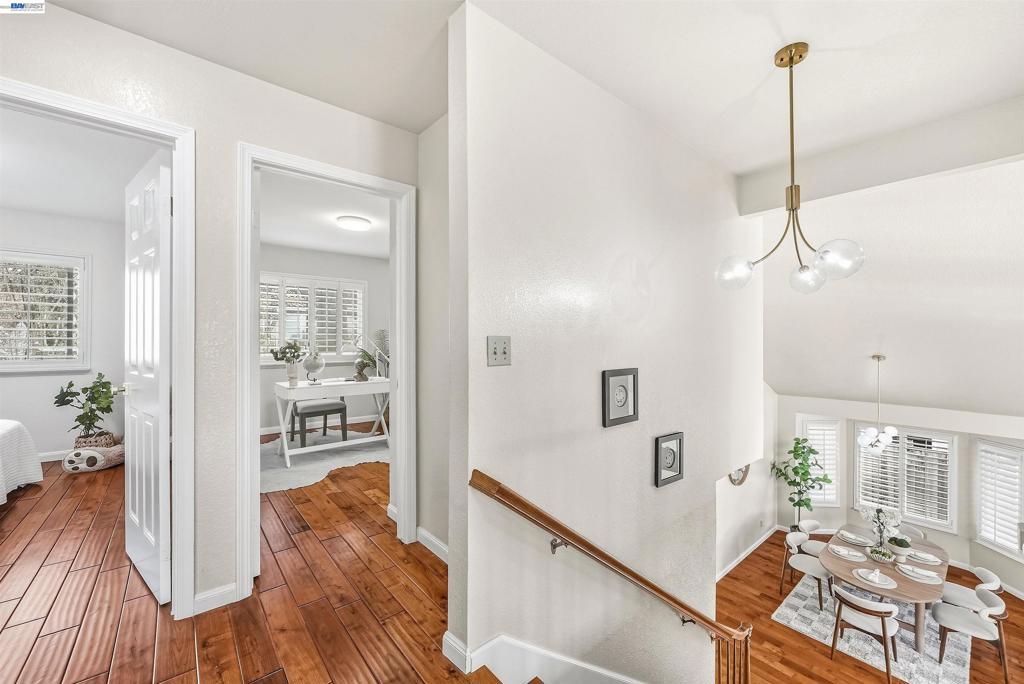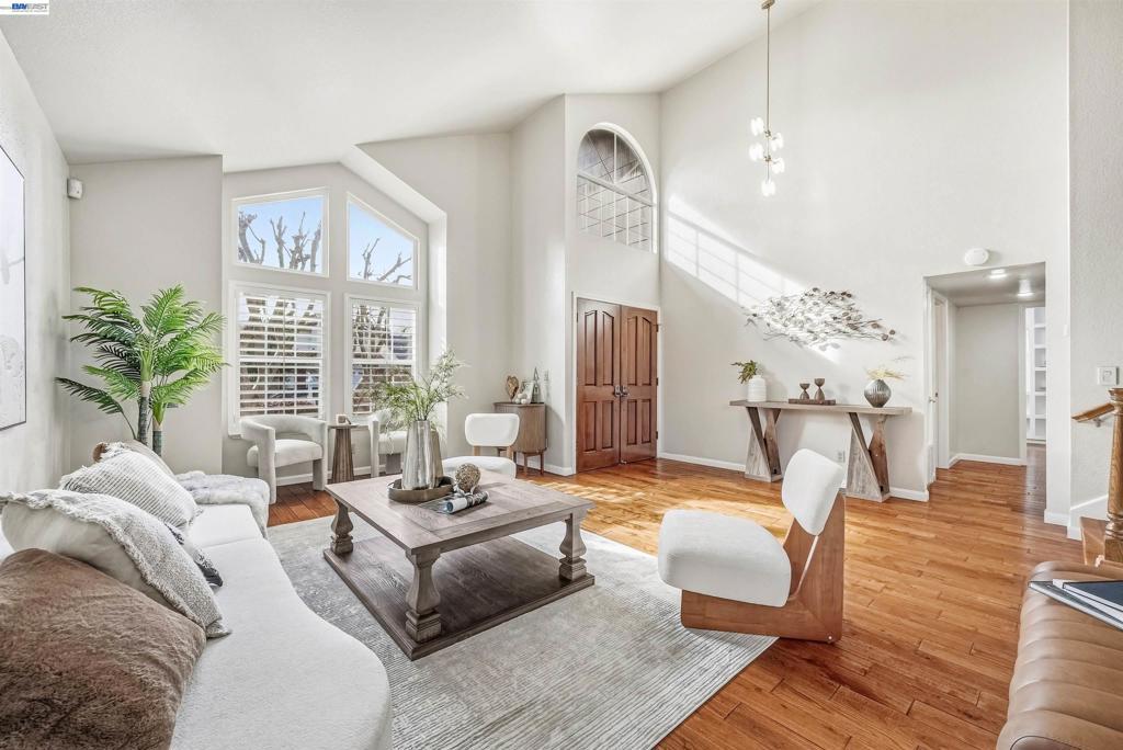 Welcome to this beautifully maintained home in the highly sought-after Newcastle neighborhood on San Ramon’s Westside. Featuring 4 bedrooms and 3 full bathrooms, this home blends comfort, space, and timeless design. A desirable downstairs bedroom with an adjacent full bath provides flexibility for guests or a private home office. The kitchen flows seamlessly into the family room and opens to the backyard, creating an ideal layout for both everyday living and entertaining. Soaring ceilings and abundant natural light enhance the formal living and dining areas, while the cozy step-down family room features a fireplace and wet bar. Step outside to your private backyard retreat featuring a sparkling pool, mature fruit trees — jujube (Chinese date), apple, lime, and peach — and potted bamboo that creates a serene, vacation-inspired setting. The home is equipped with two independent HVAC systems for upstairs and downstairs, providing enhanced comfort and energy efficiency year-round. No HOA. Ideally located near top-rated schools and just minutes from Bishop Ranch, Central Park, Iron Horse Trail, City Center, Trader Joe’s, Whole Foods, Target, and dining. A rare opportunity to enjoy prime Westside living.