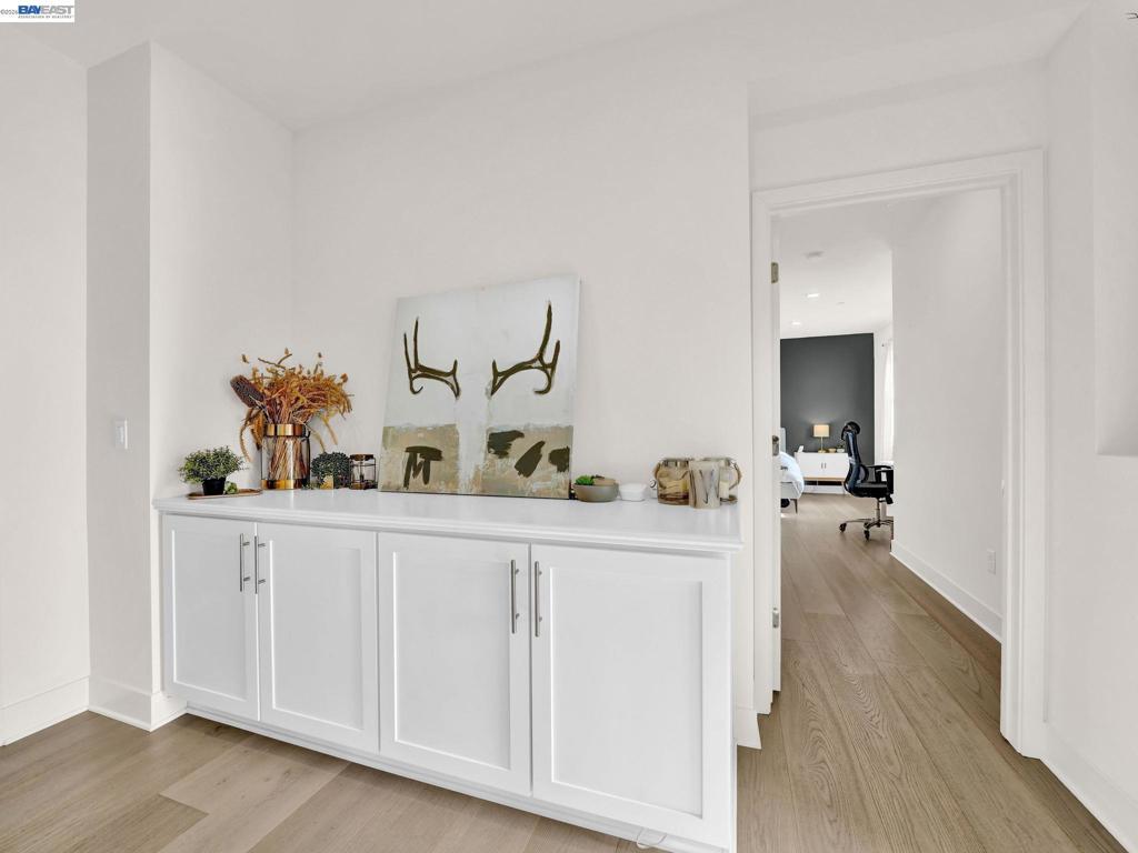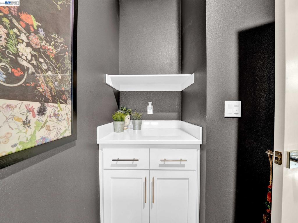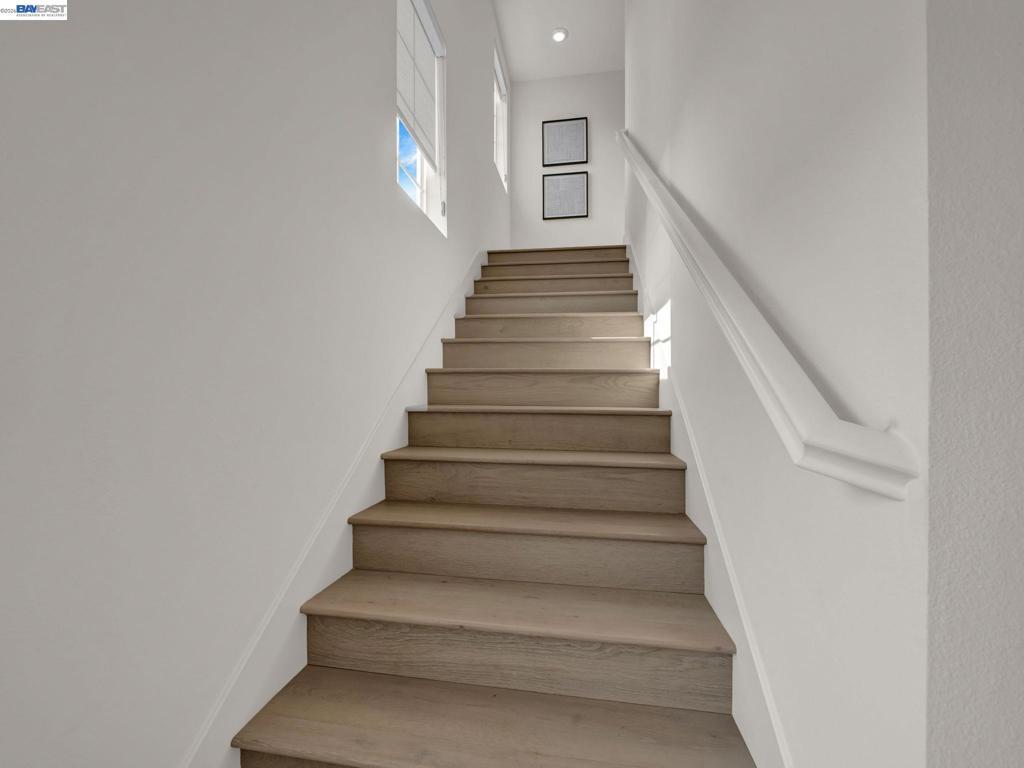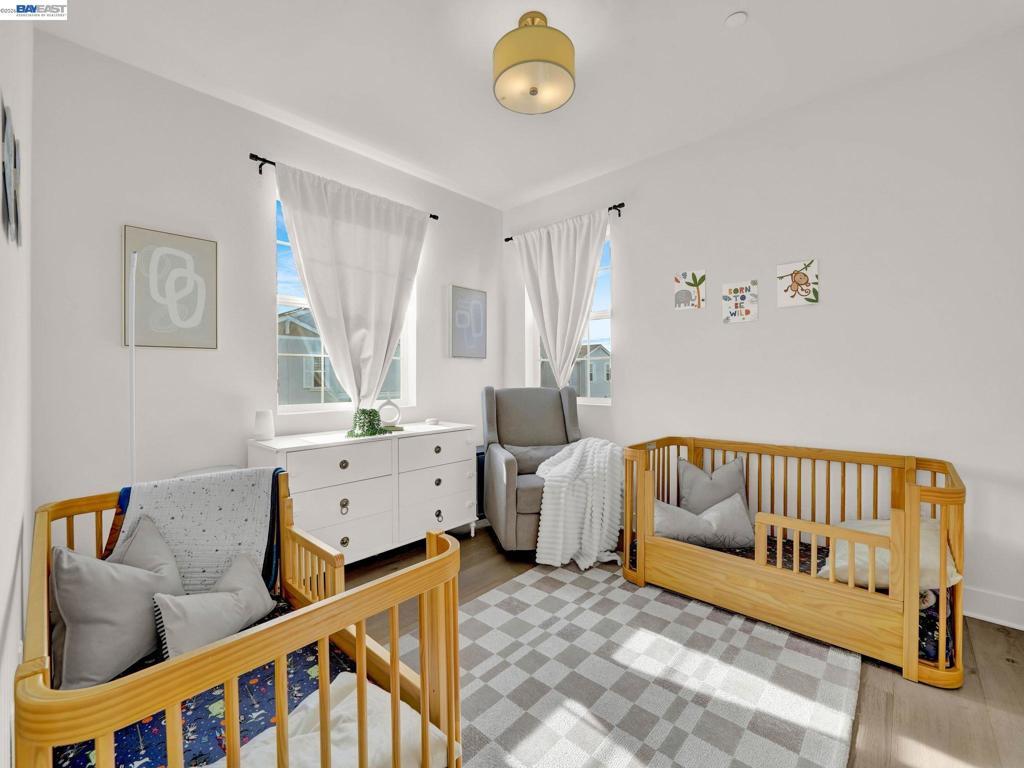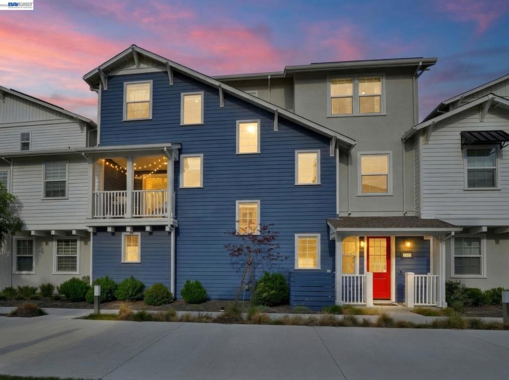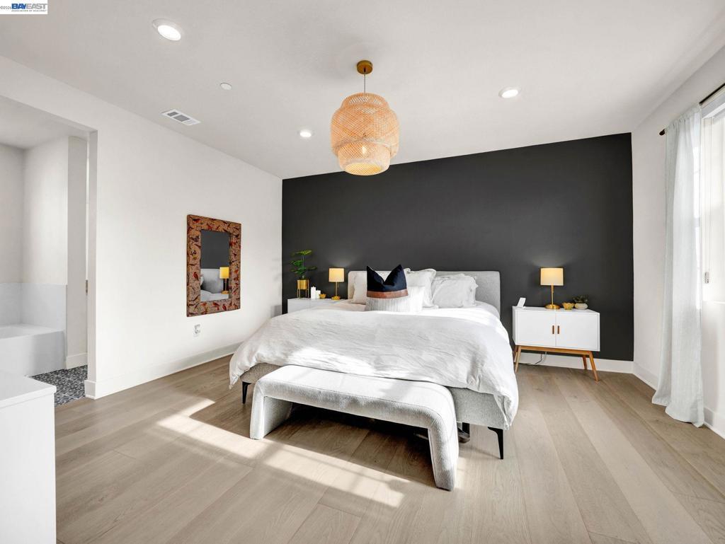 Situated in the highly desirable Bayshores community of Newark, this beautifully designed three-level home offers a bright, open floor plan with modern finishes throughout. The main living area is filled with natural light and features open-concept living and dining with smart automatic shades. The chef-inspired kitchen includes white shaker cabinets, granite countertops, subway tile backsplash, stainless steel appliances with a gas range and griddle, a spacious pantry, and a large island with breakfast bar seating, plus sliding door access to a private balcony. The main level also offers a guest bedroom or office, full bath, and laundry room. The expansive primary suite features a large walk-in closet and spa-like bath with dual sinks, soaking tub, and separate shower. Two additional bedrooms share a hall bath. Additional highlights include a finished two-car garage with EV-ready setup, central A/C, owned solar, and smart upgrades including a water shutoff system. Community amenities include a clubhouse, pool, dog park, and playground with easy access to shopping, dining, Hwy 84, Dumbarton Bridge, Hwy 880, and major tech employers.