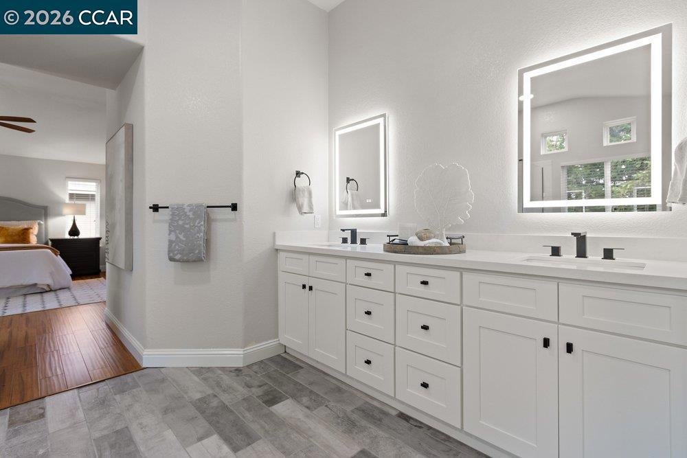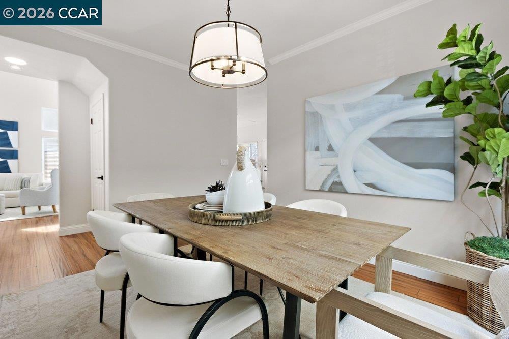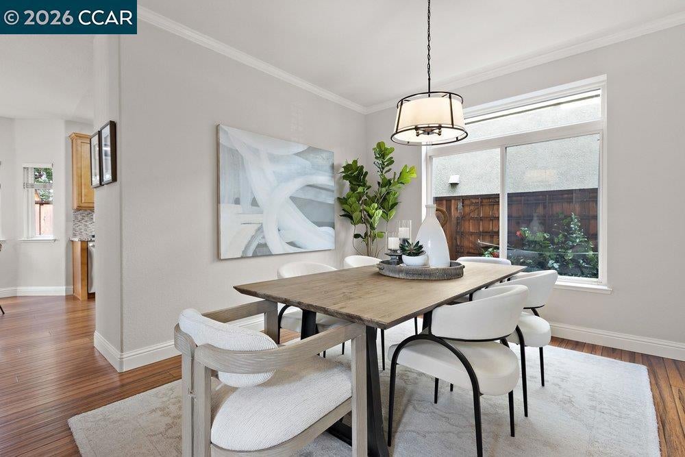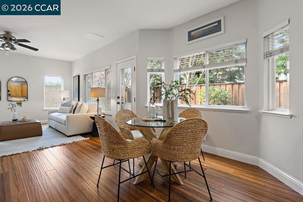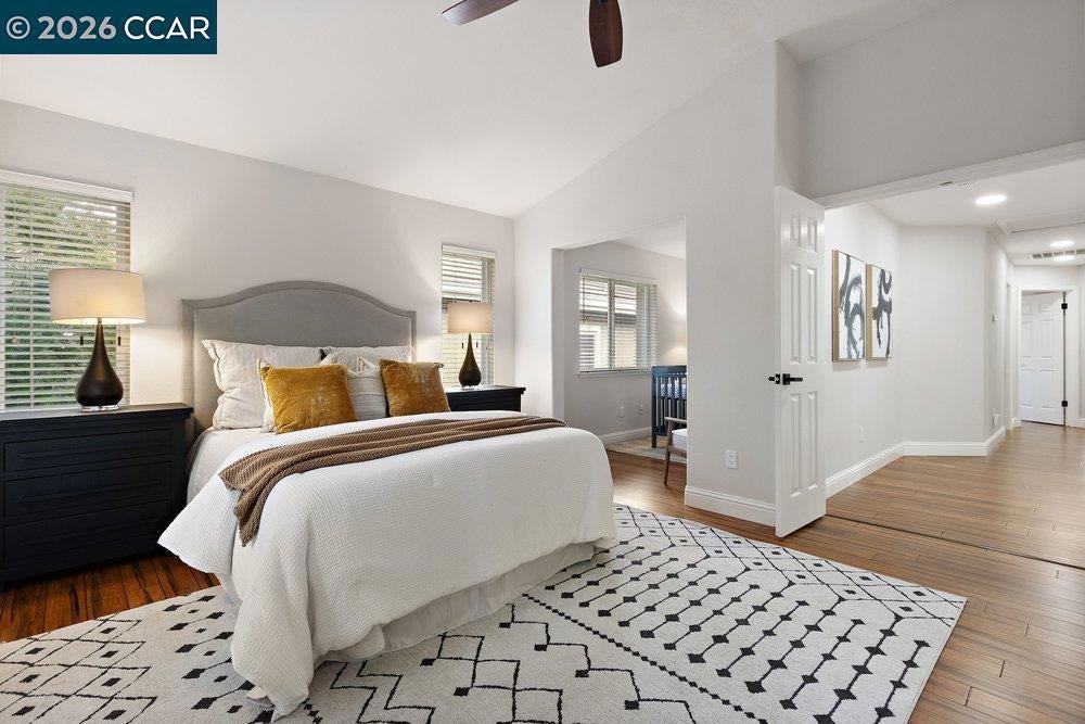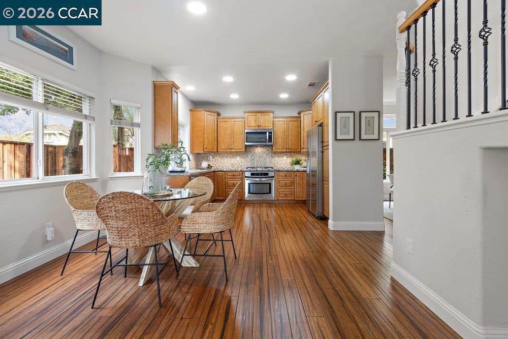 Amazing Price for this Spectacular, light filled home that radiates warmth, cozy and comfortable living. Impressive open, modern kitchen with granite counter tops, stainless appliances, pullout drawers, hardwood floors. Formal dining room, high ceilings as you enter the living room with gleaming hardwood floors and a dual sided gas fireplace shared with the family room. Ideal for casual gatherings w/views of the yard, and is open to the bay window alcove breakfast area. The Primary suite, boast a walk-in closet and a spacious separate quiet retreat/nursery/office/or exercise space. The spectacular 2026 primary bath is gorgeous with soaking tub, large shower, tile floors and double vanity. Besides the primary bedroom suite there are 3 additional bedrooms upstairs. The 2nd floor hall bath and the 3rd bath, on the main level near the 5 bedroom/office, have both been recently renovated with today's sought after features. Showcase home, model perfect condition, custom paint palette, 3 car garage, hardwood floors AND nothing to do but move in! Close to Shopping and Diablo Vista park (via walking trail) w/picnic areas, baseball/soccer fields,play area,volleyball,basketball, & "snake walk".