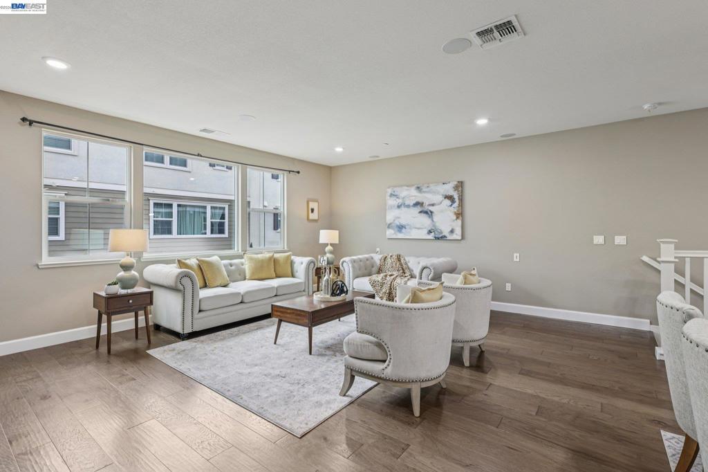 Gorgeous perfect EAST facing 3 story home in AWARD WINNING most desirable gated community of Wallis Ranch in East Dublin with TOP rated schools! Bedroom and full bath on first floor. 2nd floor has gourmet kitchen with upgraded cabinets, quartz countertops with oversize great room perfect for social gatherings for family and friends. Hardwood and carpet through out the house. Master bedroom features gorgeous bathroom, & a large walk in closet. Living room has speakers wiring installed in the ceiling and walls for Dolby Atmos 5.4.2 surround system. Garage has epoxy floors, painted walls and lots of built - in cabinets. Residents enjoy many lifestyle amenities within the sprawling, gated community. Minutes away from Livermore outlets, Stoneridge mall, shopping centers, and high-end restaurants, Fallon Sports parks, wave water park and, TOP rated schools! Easy access to 580/680 and Bart!