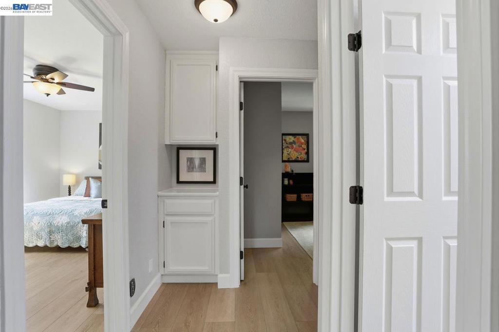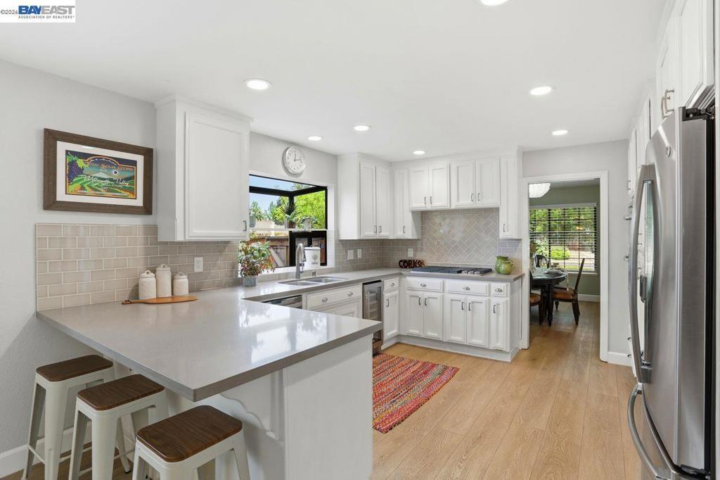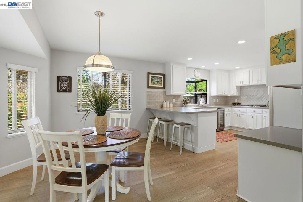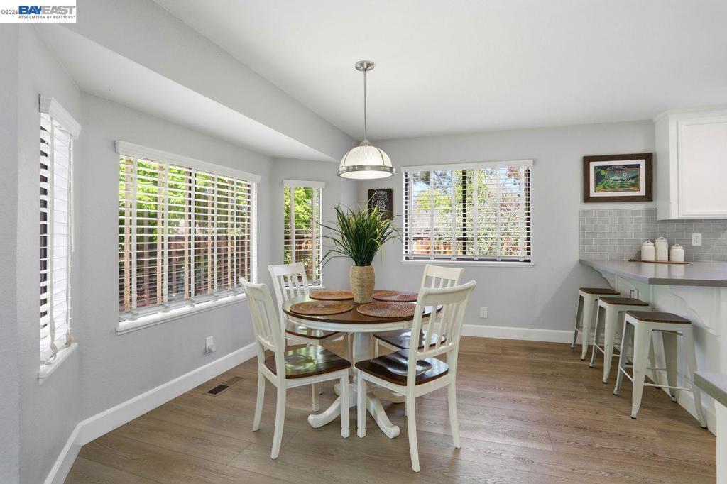 Exceptional southside home with stately curb appeal and East facing door in charming neighborhood close to downtown Livermore! This beautiful home is welcoming and enhanced throughout. LVP flooring throughout the home showcases the open floorplan and easy flow for entertaining. At foyer entry note the separate formal living and dining rooms. The updated kitchen sparkles with quartz countertops and custom tile backsplash and features stainless steel appliances. Adjacent breakfast nook opens to a spacious family room which is the heart of the home with raised hearth fireplace, vaulted ceilings, skylights and oversized sliding door to lush and private back yard., A wonderful space for relaxing with family and friends! The large primary suite is on the first level with his and hers walk in closets. There is one other bedroom downstairs plus a remodeled guest half bath. Upstairs are three sizable bedrooms and a large hall bath with skylight. The private backyard was relandscaped in 2019 with expansive concrete patio, new irrigation drip and sprinklers and raised garden beds. Newer fences. Low HOA fees include neighborhood pool. Walk to downtown eateries and shops and the popular Farmers Markets Thursdays with music and food trucks. There is more to do in Livermore!