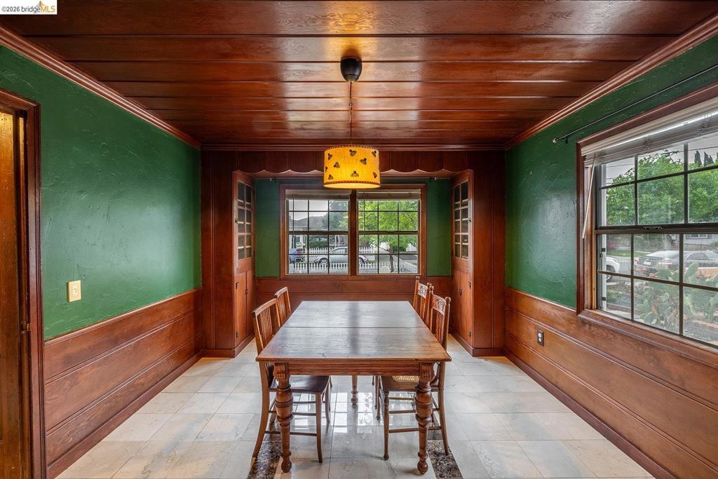 Open House Saturday 4/11 11am-1pm. Step back in time to this rare, character-rich 1941 gem in the heart of Antioch. From the moment you walk in, you're greeted by original knotty pine wood cabinetry and wall paneling in the kitchen, original wood-paneled ceilings, built-in bookshelves, and a charming bay window seat in the living room — all lovingly preserved from 1941. The dining room stuns with original wood paneling, wood ceiling, and built-in cabinetry, now complemented by updated marble tile floors. The kitchen shines with updated granite countertops and a beautiful stone backsplash. Cozy up by the living room fireplace, elegantly updated with a marble tile surround. The original 1941 wood staircase leads you upstairs to built-in cabinetry, two bedrooms with a connecting crawl space, attic storage, and a full bath. A convenient half bath is located downstairs. The laundry room off the kitchen features a private side entrance. The detached garage adds storage and flexibility. Outside, enjoy a generous 5,314 sq ft lot. This home is a rare opportunity to own a piece of history with timeless craftsmanship and thoughtful updates throughout. Truly one of a kind — schedule your showing today.