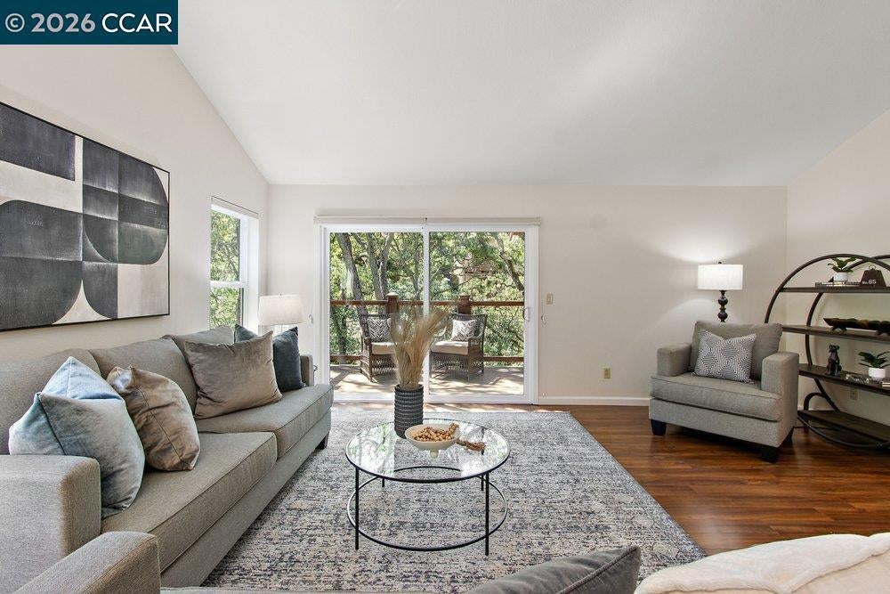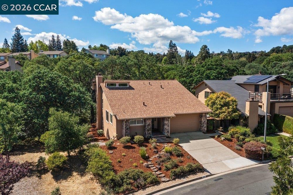 Tucked away in the desirable Diablo Valley Estates neighborhood, this inviting Pleasant Hill home offers a blend of comfort, functionality, and location. Step inside to soaring ceilings that create a bright, open atmosphere, complemented by a well-designed, functional floor plan that flows effortlessly for everyday living and entertaining. Pride of ownership is evident throughout, showcasing a home that has been well-maintained over the years. The thoughtful layout features all secondary bedrooms and a second living area on the lower level, providing flexibility for guests, family, or a home office, while the private primary bedroom is ideally situated on the upper level for added comfort and separation. The kitchen is appointed with quartz countertops, double ovens, a water filter, custom cabinets, and generous storage. The backyard provides a peaceful, wooded setting with a private patio, perfect for relaxing or hosting, along with a convenient storage shed. Low-maintenance landscaping enhances the home’s ease of living while still offering natural beauty and year-round enjoyment. Ideally located near top-rated schools, local parks, and scenic trails, this home also enjoys close proximity to downtown Pleasant Hill, shopping, dining, and commuter routes, including BART.