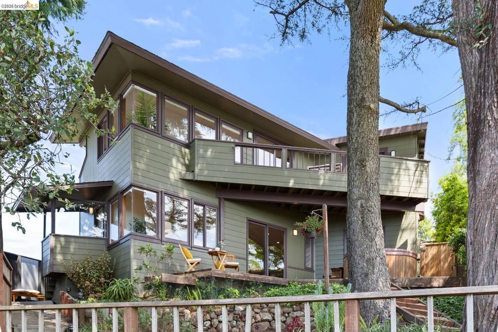 A private sanctuary in the coveted Berkeley Hills, this luxurious retreat offers gorgeous San Francisco and Golden Gate Bridge views from every level. The open and inviting floor plan connects generous living, sitting and dining areas with a balcony, capturing natural light and dramatic vistas from sunrise to sunset. A beautifully modernized chef’s kitchen is colorful and trendy - equipped with top-of-the-line appliances and abundant storage. Double doors open to a deck and garden - perfect for indoor/outdoor living and entertaining. Flexible floorplan is ideal for multi-generational living as each floor has access to the outdoors while still being connected. Each bedroom has it's own bathroom - 2 bedrooms with stylishly remodeled baths are found on the main level, while the lower-level primary suite or in-law offers direct access to a private deck with hot tub. This luxurious escape comes with another bedroom overlooking the view, a gas fireplace, sitting area, walk-in closet, and laundry. Storage, a 2-car garage on the street level and impeccable maintenance are a testament to convenience and comfort! Ideally located near Tilden Park & the Golf Course, with convenient access to UC Berkeley, this home offers the perfect blend of privacy, style, comfort, and nature. BESO Score 1