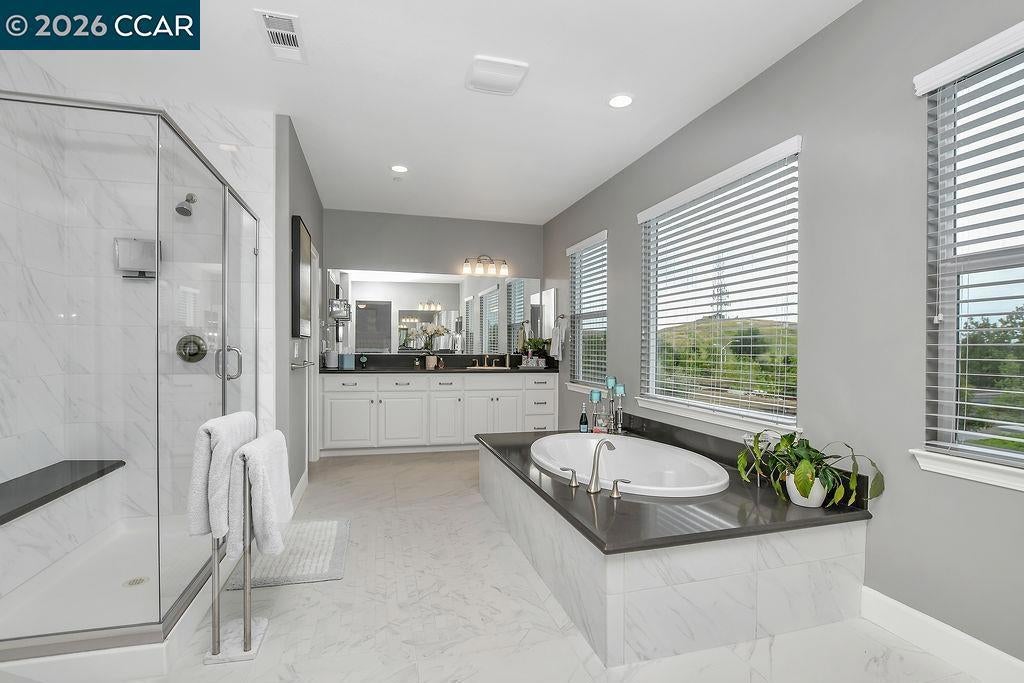 Thoughtfully designed with two bedrooms & two full bathrooms on the ground level, perfect for elderly living, extended family, or anyone needing main-floor accommodations. GORGEOUS FORMER MODEL HOME with all the bells & whistles! Lived in for approximately 1 year only, this home shows like new! Per the builder, this home features over $325,000 in upgrades & designer finishes throughout. The incredible primary suite features a cozy gas fireplace, 2 walk-in closets, dual vanities, a soaking tub, & a large walk-in shower. Additional highlights include a huge loft/recreation room, chef-inspired kitchen with a large center island, tankless water heater, instant hot water, dramatic formal dining room with gorgeous chandelier, two fireplaces, crown molding, custom built-in seating with cushions & new window coverings throughout. Ideally located in a premier Antioch neighborhood bordering Brentwood. Just minutes to hwy 4, Antioch BART & the Streets of Brentwood shopping center. Stunning stamped concrete entry sets the tone for this beautifully landscaped property. Expansive backyard is designed for both relaxation & entertaining featuring multiple entertaining areas, nice outdoor dining space, and lush garden areas throughout. A truly exceptional outdoor setting offering space & privacy.