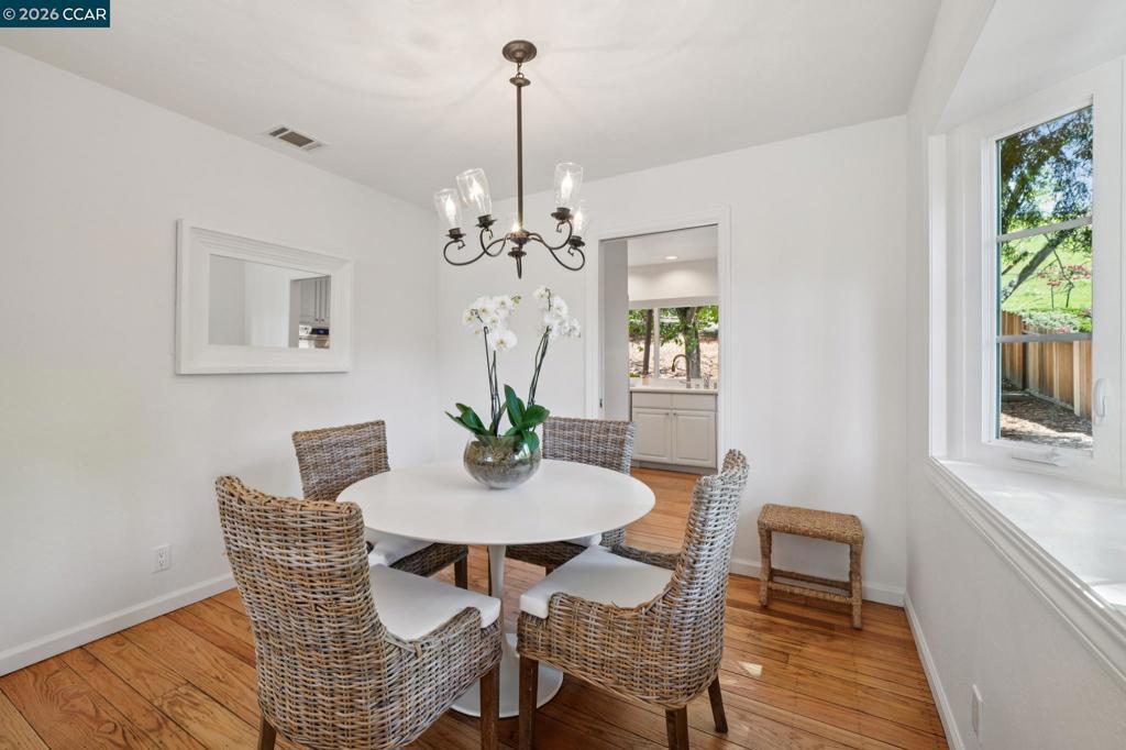 This fabulous 3 bedroom / 2 bath single-level home offers wonderful privacy. House features include a large family room with access to a private and peaceful backyard, primary suite with ensuite bath and a spacious closet, gorgeous hardwood flooring throughout, a sun-filled back patio with views of the Moraga Hills, and a 2-car garage with ample storage space. Separate bonus room offers endless possibilities: office, gym, media room or a guest space. Conveniently located nearby to Moraga schools, parks, and the Sunday farmer's market as well as to downtown Lafayette and public transportation. Enjoy the best of what Moraga has to offer!
