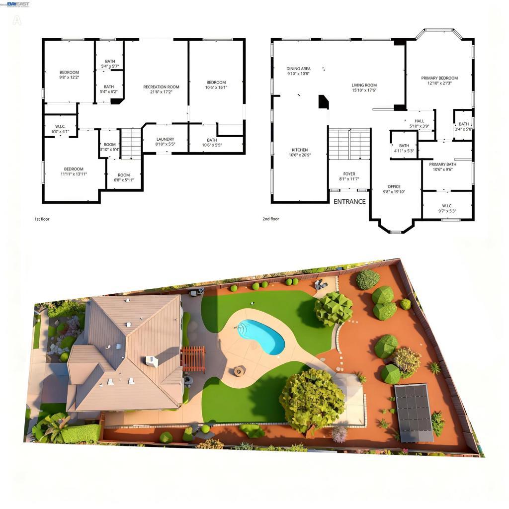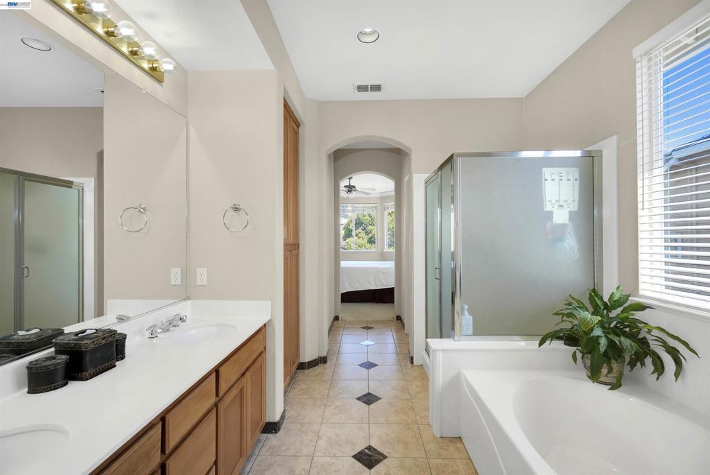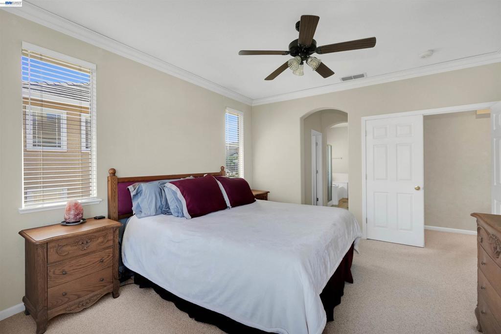 Located in the highly desirable 5 Canyons Neighborhood, this "original owner" home sits on a larger 11,315 sq ft lot and boasts an incredible low-maintenance backyard featuring extensive hardscaping, abundant Synthetic Turf Grass, and a fiber glass in ground swimming pool that will make your home the envy of friends and family. Unglazed flat-plate type solar pool heating panels keep the pool comfortable all summer! Inside, the kitchen offers ample oak cabinetry, crown molding, and high-end appliances. Desirable split level plan has a natural flow to the upstairs or downstairs. Upstairs you'll enjoy the living and dining room areas, the home office, a 1/2 bath, and the primary suite with ensuite bathroom. Downstairs you have a family room with access to the backyard, another primary suite with ensuite bathroom, 2 more bedrooms and another full bath. New HVAC system throughout the home. Clear termite report and all roof repairs have been recently completed. Location offers access to multiple parks, Highways, BART, nearby medical services, and convenient shopping. Only one question here... which family will be enjoying this summer's barbecues while living in this home?