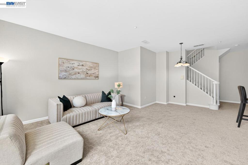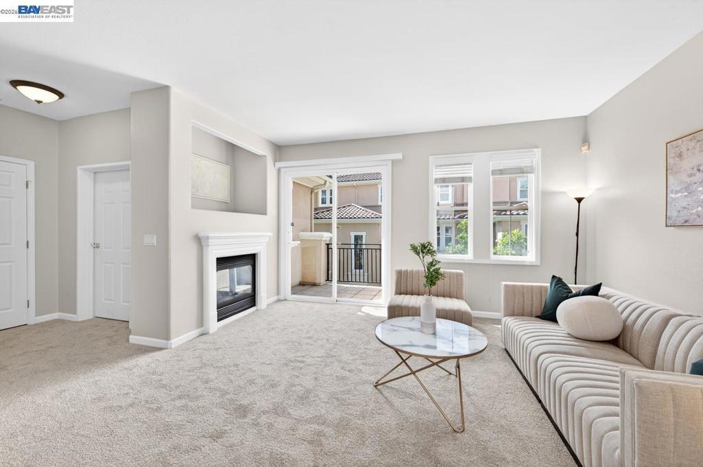 Welcome to this East Dublin gem—a rare 3-bedroom, 1,897 sq ft condo in Dublin Ranch, just a short walk to all three top-rated schools and offering a true resort-style lifestyle. Step inside to soaring ceilings and an open, light-filled layout. Freshly updated with brand new carpet and paint, the home feels modern and move-in ready. The chef-inspired kitchen features granite countertops, stainless steel appliances, and a spacious island that flows into the dining and living areas—perfect for everyday living and entertaining. The inviting living space centers around a cozy fireplace and opens to a private balcony—ideal for relaxing or hosting. Upstairs, the oversized primary suite offers a spa-like bath with dual vanities, a soaking tub, separate shower, and a walk-in closet. Two additional bedrooms provide flexibility for guests or a home office. Designed for convenience, the home includes upstairs laundry, a tandem 2-car garage, and great storage. Residents enjoy a pool, spa, fitness center, clubhouse, and beautifully maintained grounds—all with low HOA dues. Close to parks, trails, top-rated schools, Fallon Gateway shopping, and easy freeway and BART access, this home truly has it all. Homes like this in Dublin Ranch move fast—don’t miss it.