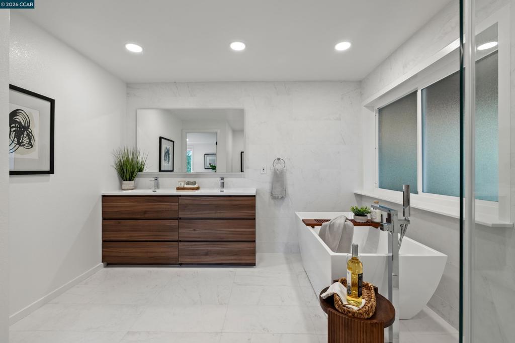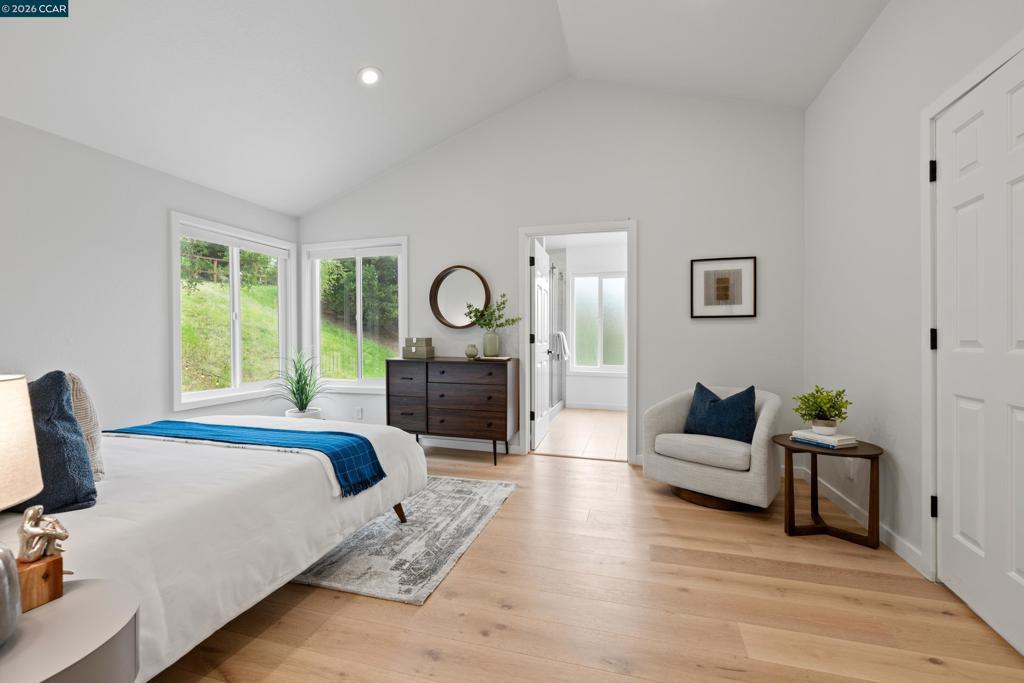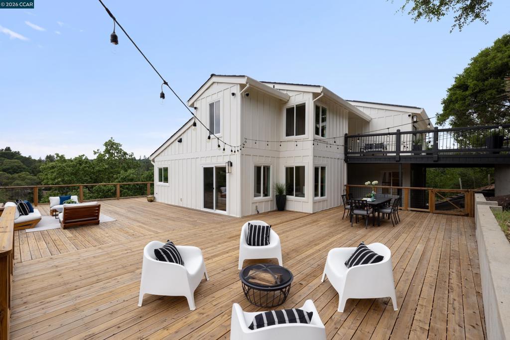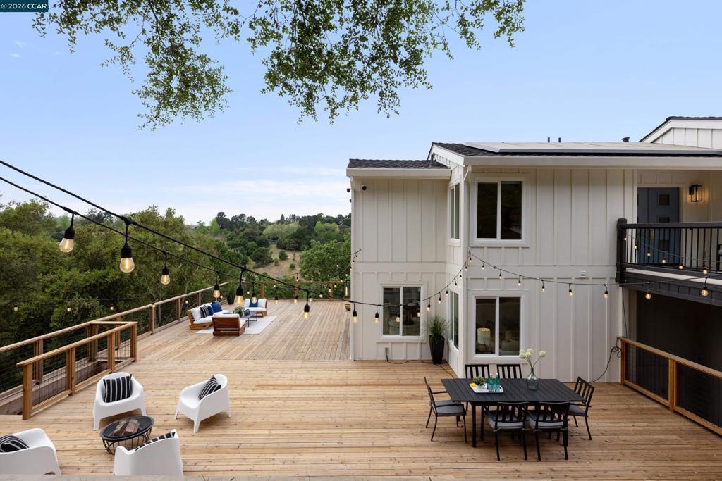 A fully reimagined, modern gated residence showcasing exceptional updates, seamless design, and sweeping views from nearly every room. Expansive windows fill the home with abundant natural light, creating a bright, open, and inviting atmosphere. Featuring 5 bedrooms, 4.5 bathrooms, and approximately 3,849 square feet, the flexible floor plan is both functional and refined. A beautifully updated kitchen and great room anchor the home for everyday living, while a spacious living and dining room provide an ideal setting for entertaining. The oversized primary retreat offers a true escape, complete with a stunning walk-in closet. Access to the expansive two-story decks create effortless indoor-outdoor living. White oak wide-plank engineered wood floors run throughout, complemented by remodeled kitchen and bathrooms, a finished garage, and high-end smart home features. Over 40 owned solar panels with three Tesla Powerwall batteries provide impressive efficiency. A trail at the base of Wanda Lane offers a 1.1-mile walk/ride to downtown Orinda and BART. Set on approximately 1.29 acres, the property offers rare scale and versatility. Ideally located near Hwy 24/680, top-rated Orinda schools, shopping, dining, and recreation, this home blends modern living with privacy.