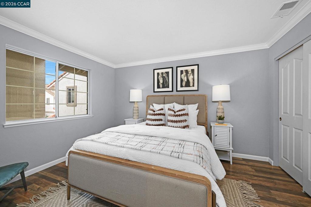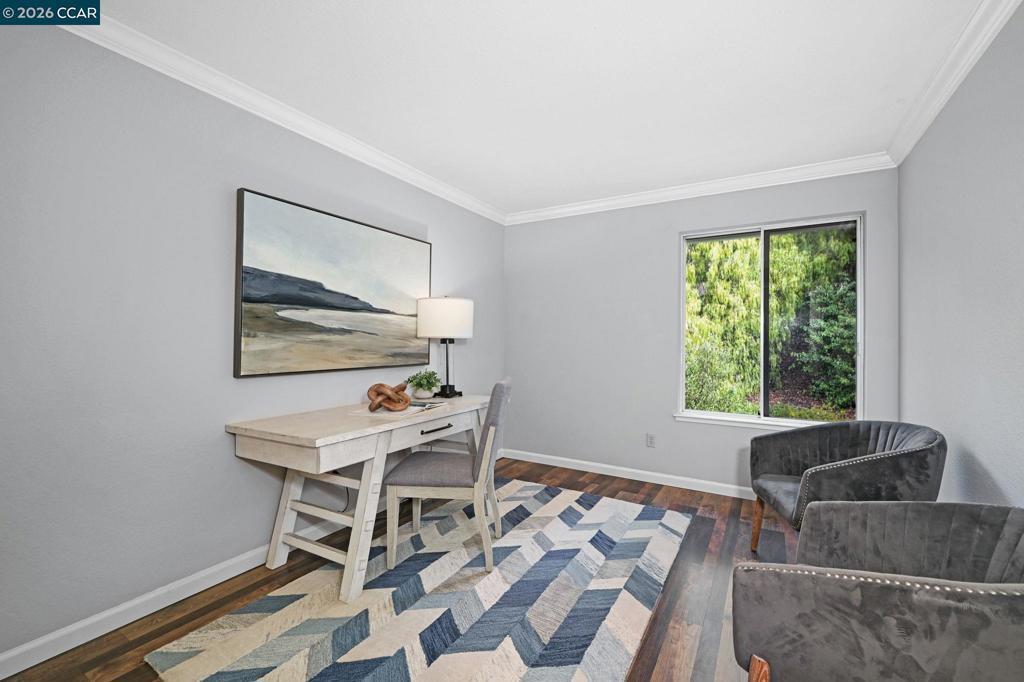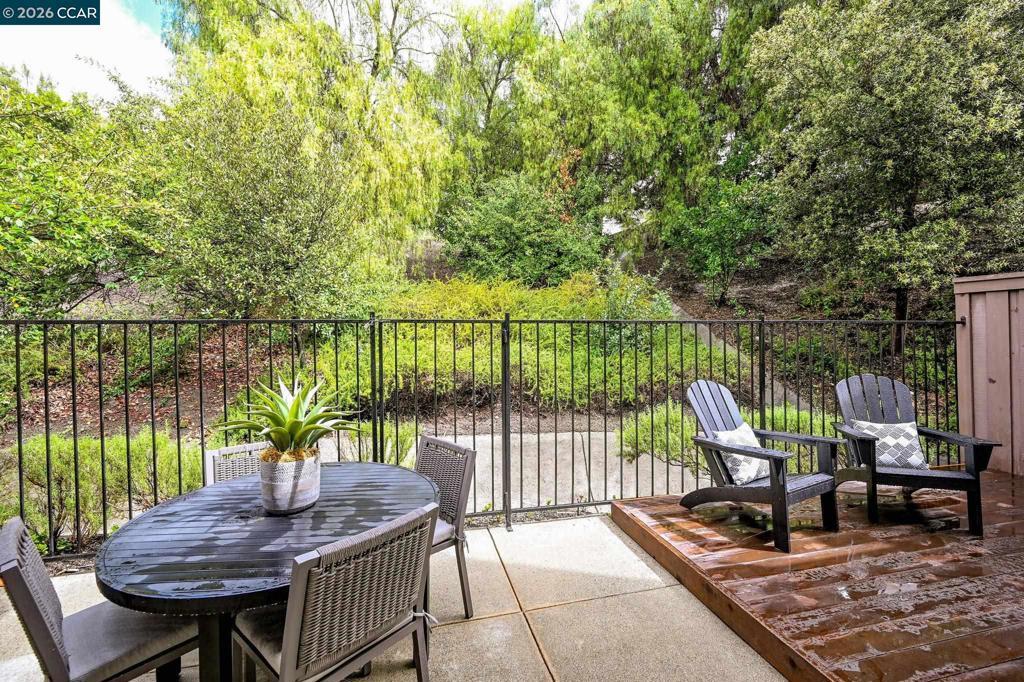 Sharp 3 bedroom townhouse with private back deck off the living and dining room for entertaining or just relaxing. Vaulted ceilings, light and bright. Crown molding throughout the home. Rooms have been recently painted. Kitchen has white cabinets plus a new microwave oven and dishwasher. Nicely finished small area under the stairs with door perfect for storage or fun kids play area. New updated thermostat plus new HVAC, and newer water heater. Primary bedroom, walk-in closet with built in shelving. Near childrens play area and neighborhood pool. Walk to shopping and dining both at Blackhawk Plaza and the many stores across Tassajara. Minutes to 680 freeway and downtown Danville. Finished garage with lots of storage shelves. Garage door has been insulated. This home is ready for the buyer who just wants to move in and enjoy a well maintanied home. Top ranked San Ramon Unified School District. Call Gretchen for a private showing 925-683-2477 OPEN Sunday 19th from 1:30 to 4:00