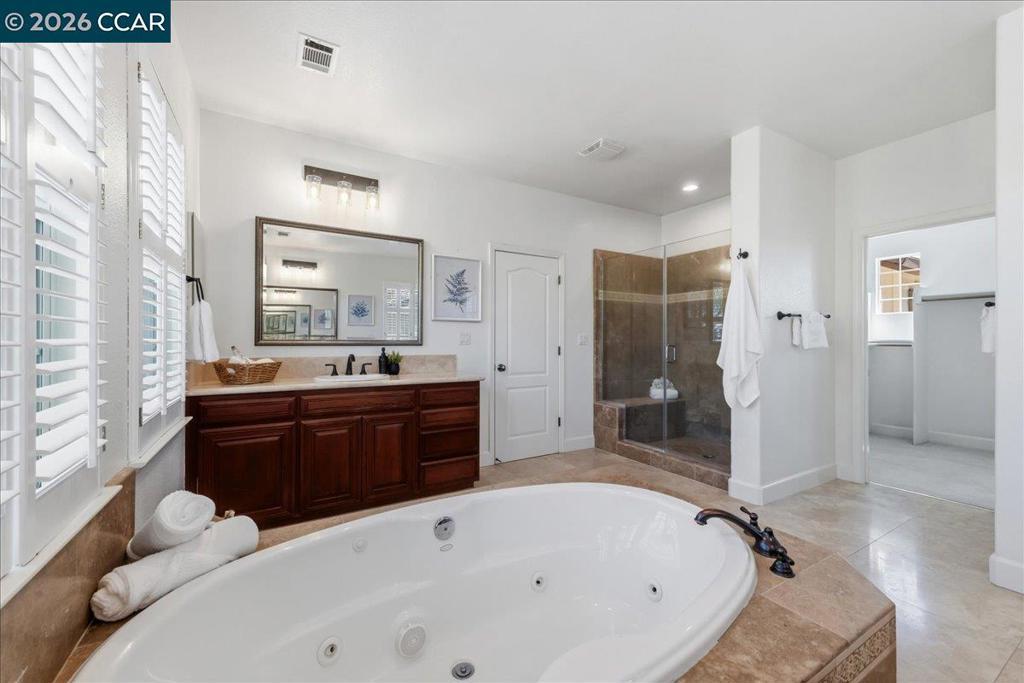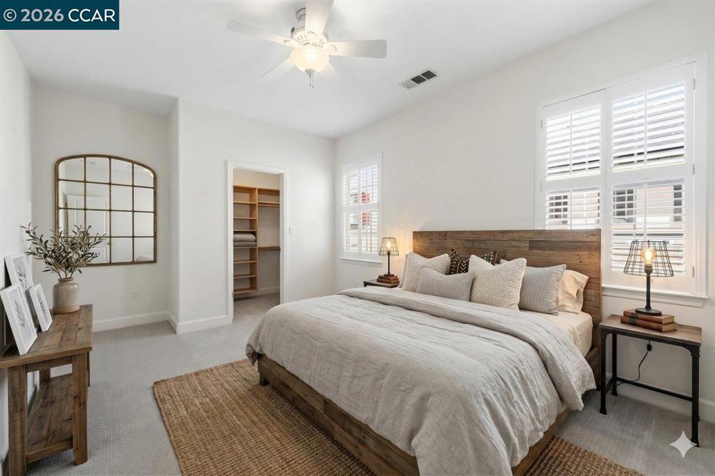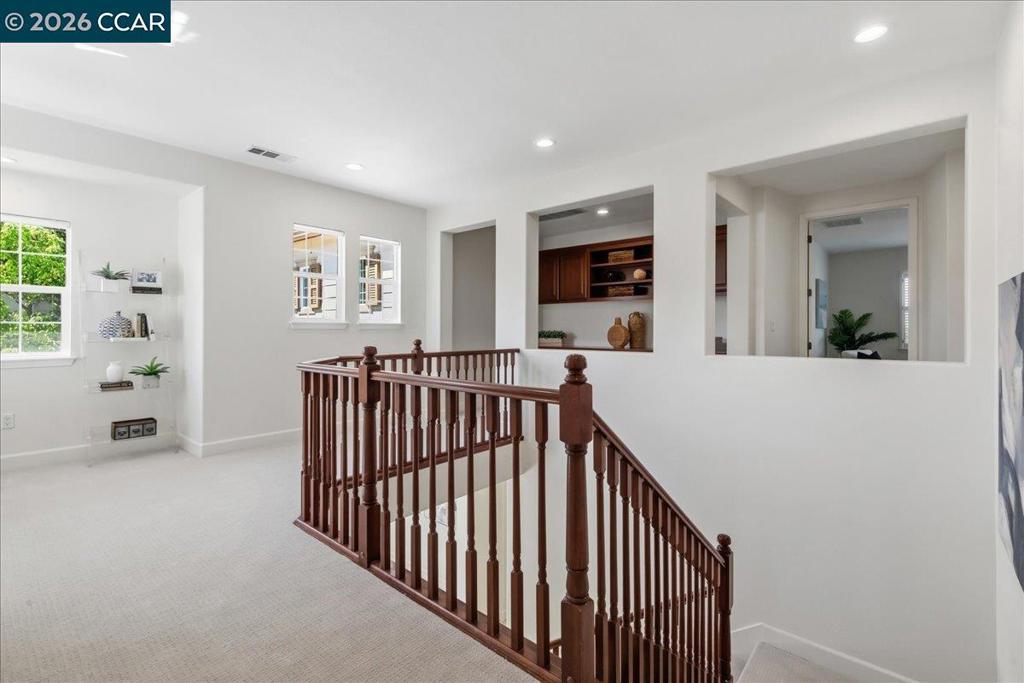 Tucked at the end of a quiet court in the sought-after Windemere neighborhood of San Ramon, 211 Cullens Court offers 3,757± sq ft of beautifully updated living space. This 5-bedroom, 4-bath home includes a main-level bedroom and full bath - ideal for family, guests or a private office. Impeccably maintained and updated with fresh interior paint and new carpet (2022). The kitchen features modern stainless-steel appliances: a new built-in KitchenAid refrigerator (2025), KitchenAid Double Oven, 6-Burner Wolf gas stove with WIFI-enabled range hood (2024) and Bosch Dishwasher. This is complemented by smart upgrades including an energy efficient thermostat, Ring security system with glass break sensors, and WIFI-enabled sprinkler control (2023). Two new dual-zone HVAC systems (2024) and a water softener enhance comfort and efficiency. The backyard is designed for relaxation and gathering with a gas fire pit and mature fruit trees including lemon, apricot, and pomegranate. Additional highlights include a 3-car garage with two new WIFI-enabled openers, electrical outlets behind each toilet, and new front metal door (2022). Located near top-rated SRVUSD schools, parks, shopping, and commuter routes - this is Windemere living at its finest.