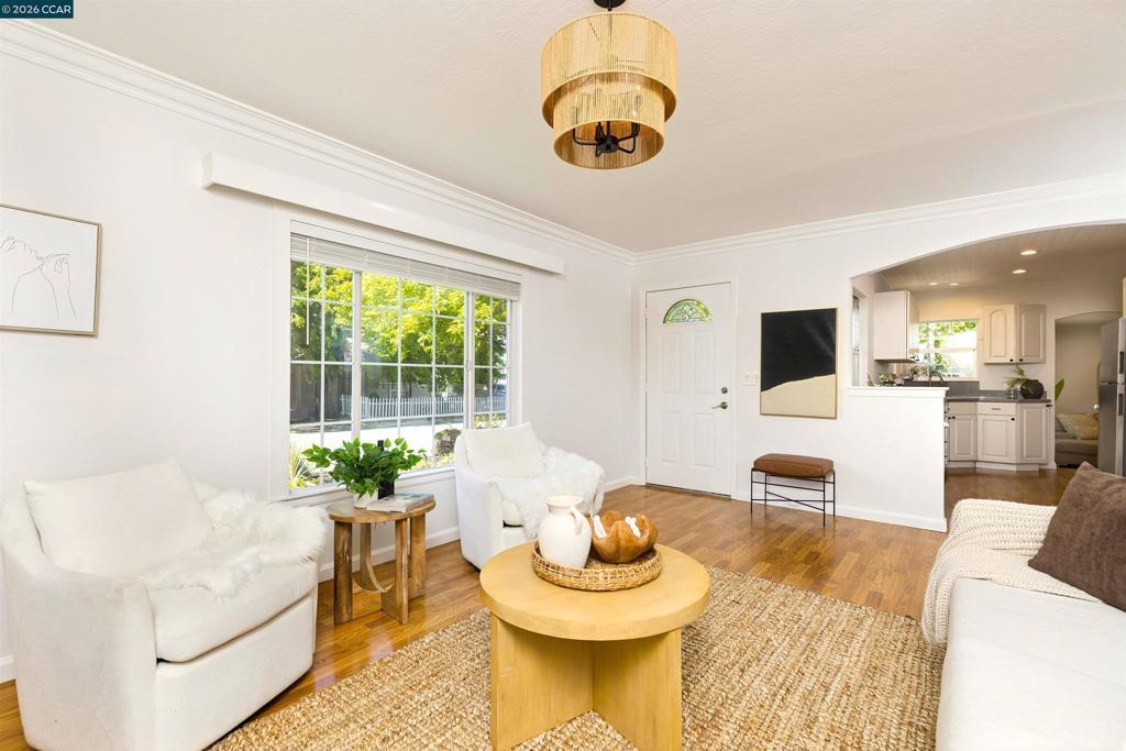 Charming cottage surrounded by a lovely landscaped lot, blends 1940s character with modern comfort and livability. This 2-bedroom, 1-bath home features a welcoming living room, gas-burning fireplace and large picture window. Energy-efficient recessed lighting complements a bright, well-designed eat-in kitchen with SS appliances, including a new 5 burner gas range and refrigerator. The updated garage conversion adds flexible living space and opens to a covered patio, level lawn with plenty of room to garden, play and entertain! Separate semi-finished out-building offers storage, fits a small car and offers desirable space to create a finished office, studio, or workshop. Situated in a coveted neighborhood, offering a peaceful suburban atmosphere, commuters will love the half mile to BART, while walkers will enjoy strolling to Todos Santos Plaza and vibrant restaurants, cafés, and retail of downtown Concord. With its expansive flat lot, endless possibilities for outdoor living including room for a pool or expansion, this cottage is a rare find combining charm, space, and convenience!