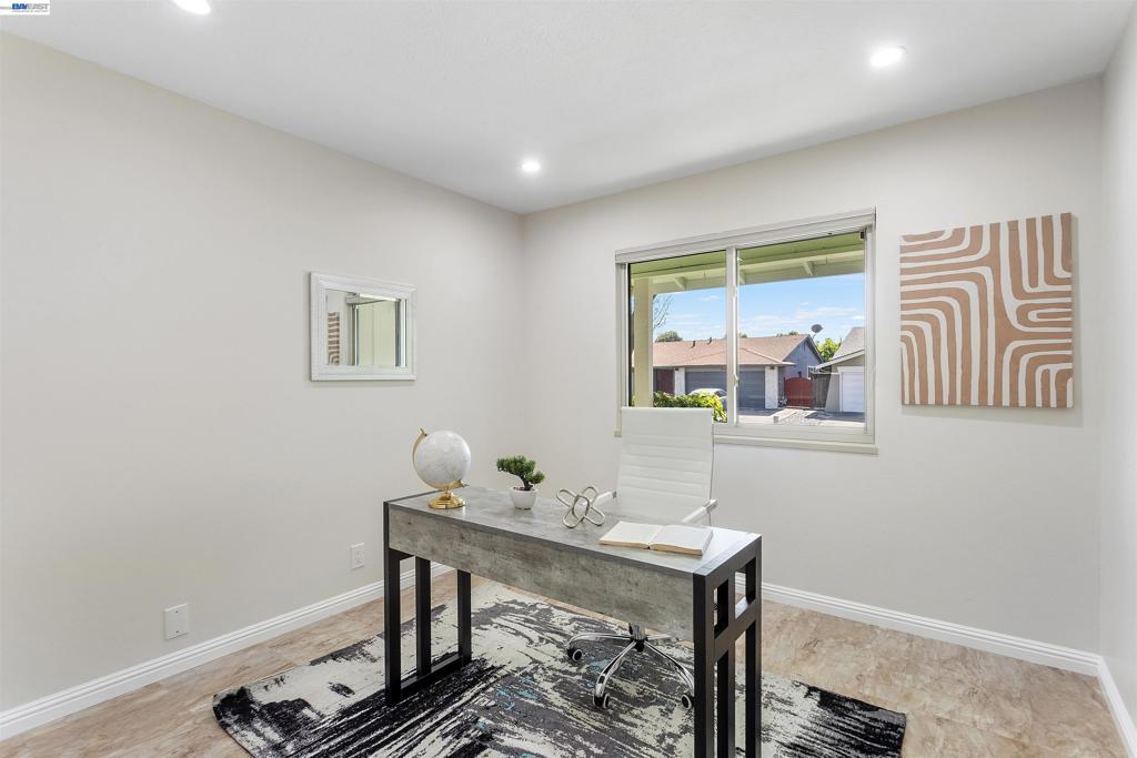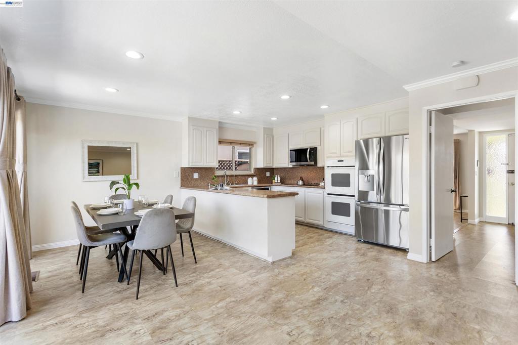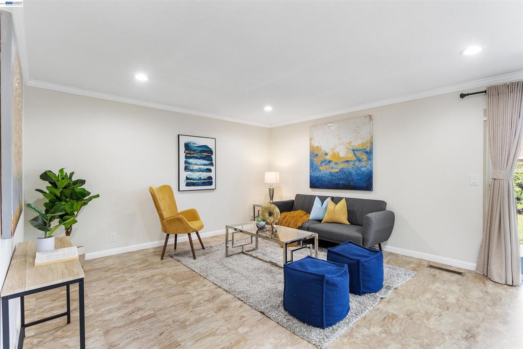 Welcome to this beautiful, move-in-ready single-story home in the desirable Brookvale neighborhood. This updated residence features 3 bedrooms, 2 bathrooms, and spacious living, family, and dining areas. The home shines with modern upgrades, including a brand-new roof, fresh interior paint, and dual-pane windows. There is plenty of storage space with organizers in the bedrooms and the garage. The remodeled kitchen and bathrooms are complemented by high-quality flooring throughout. The kitchen comes equipped with a newer fridge and dishwasher, plus a brand-new range. Practicality meets comfort with central heating and cooling, a whole-house water softener, a security system, and a new smart garage door opener. Outside, the low-maintenance backyard is a private retreat with mature lime, persimmon, fig, saturn peach, and navel orange trees. Located in a prime spot, you are within walking distance to top-rated schools, the Los Cerritos Community Center, Quarry Lakes Regional Park, and the library. With easy access to I-880, Hwy 84, BART, and local dining, this home offers the perfect blend of convenience and charm.