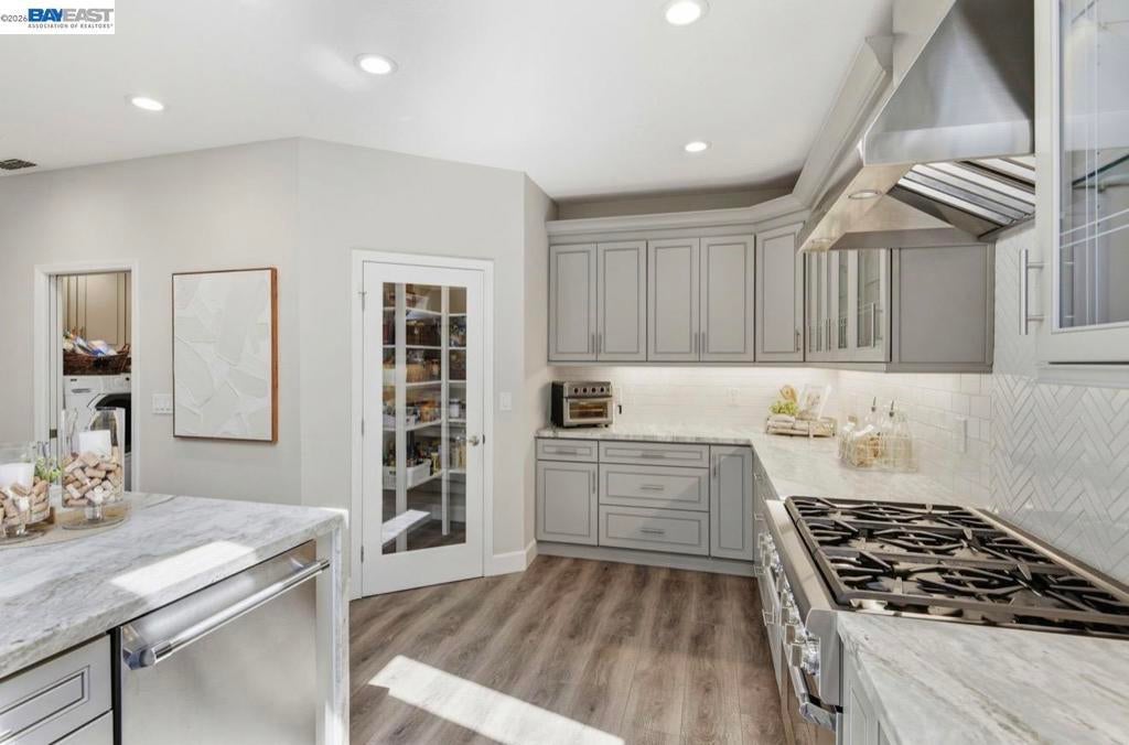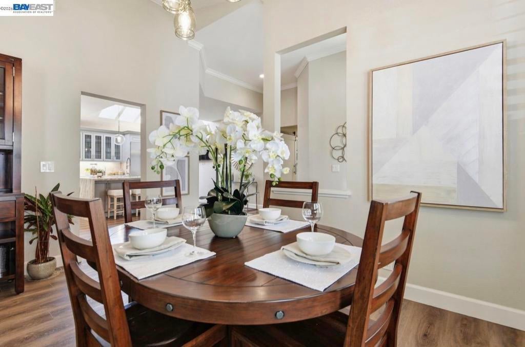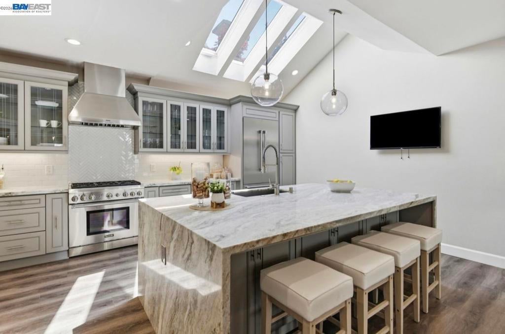 Instantly appealing single-level Shapell home in centrally located Danville, thoughtfully remodeled and expanded with impressive high-end finishes. Bright, open layout with seamless flow, high ceilings, & no wasted space. A truly showstopping kitchen features custom wood cabinetry, dramatic waterfall-edge quartz island and countertops, chef’s-grade stainless steel appliances, a walk-in pantry, and skylights providing abundant natural light. Spa-inspired baths are appointed with rich mosaic & subway tile, designer fixtures, and elegant lighting. The professionally landscaped backyard is ideal for entertaining, featuring a slate patio and walkways, a shade trellis, and conversation areas. Ideally situated in the highly sought-after, established Diablo Highlands neighborhood, this location offers a rare blend of convenience and community charm. Moments from freeway access and the upscale shops and dining at Livery Marketplace and Downtown Danville, this special enclave is defined by mature, tree-lined streets and a timeless, welcoming feel. Enjoy easy access to open space and scenic trails, along with community amenities including a pool, tennis courts, and a dog park. All of this, combined with proximity to highly regarded schools, creates an exceptional "turnkey" lifestyle.