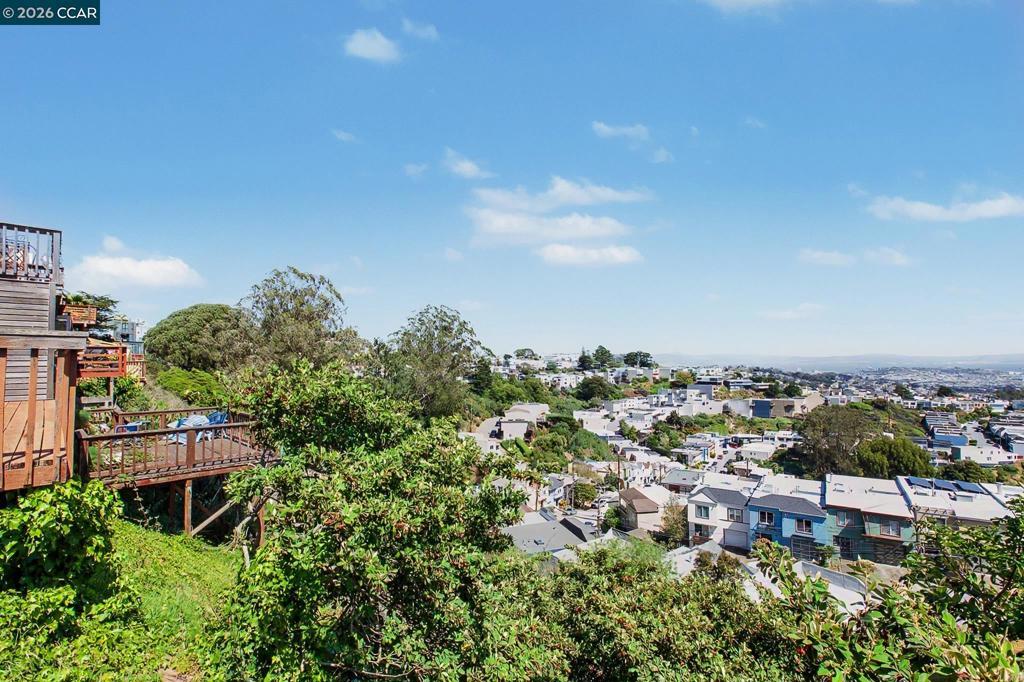 3-bedroom, 2-bath home in desirable Miraloma Park offering incredible panoramic views of San Francisco and the East Bay. With 1,489 sq ft of living space, this home features a functional layout with separate living and dining areas, a cozy wood-burning fireplace, and abundant natural light from large windows and skylights. Original hardwood floors add charm, while the kitchen features newer luxury vinyl flooring. The home is clean and well-maintained, providing a great opportunity for buyers to update and customize to their own style. Downstairs includes a bonus room and full bath with potential for an in-law unit or junior ADU. Situated on a 3,175 sq ft sloped lot along a quiet hillside, directly across from a serene, undeveloped green space. Located near parks, trails, and Mt. Davidson, with easy access to Monterey Blvd shops and dining, Glen Park BART, City College, and Hwy 280 for convenient commuting. Highly regarded school district.