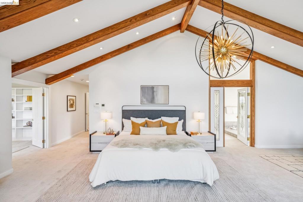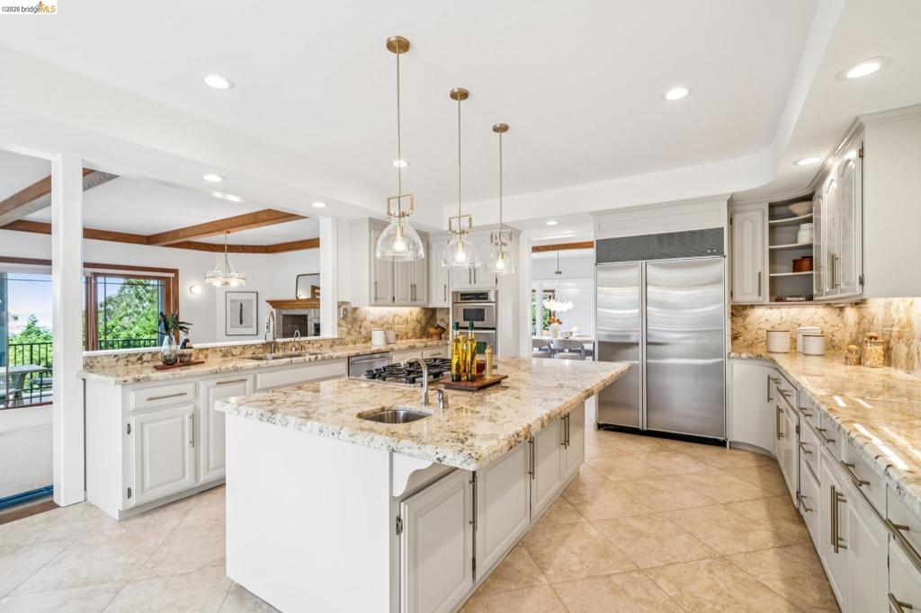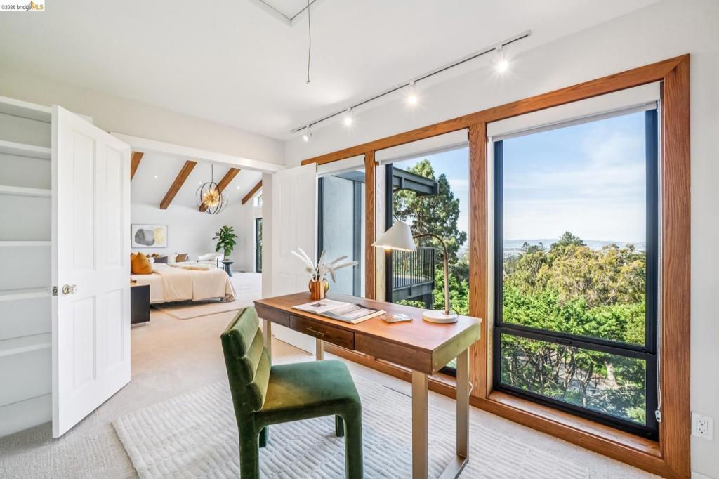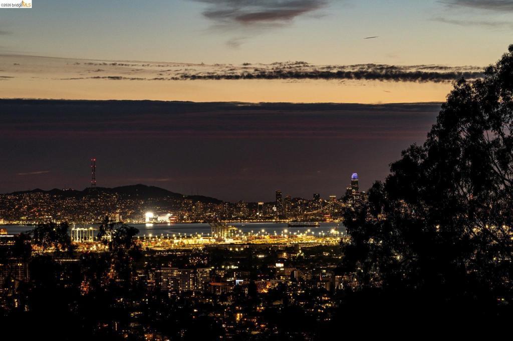 Rare estate style home on the Piedmont side of Montclair with stunning Bay views. Custom built with over 7,000 square feet of flexible living space, This expansive home offers 5+ bedrooms and 5 full, 2 half baths. A grand entry with vaulted ceilings and a sweeping staircase leads to a light-filled living room with a fireplace and formal dining room. The chef’s kitchen features a large island, ample cabinetry, a breakfast nook, and a pantry, opening to a casual den with fireplace. Expansive decks are ideal for entertaining and enjoying the views. The upper level includes four bedrooms and three baths, highlighted by a luxurious primary suite with a spa-like bath, soaking tub, double shower, walk-in closet, and private view deck. The lower level offers a guest suite with a kitchen and full bath, plus an additional office wing with a bedroom, half bath, living area and private entry. A large bonus room is ideal for a gym, theater, or recreation space. Set on park-like grounds with rose garden, mature landscaping, play areas. Amenities include a large laundry room, 3-car garage solar & tesla power, central air, high ceilings, and dual-pane windows. Private and serene, yet minutes from Montclair Village. Views: Downtown