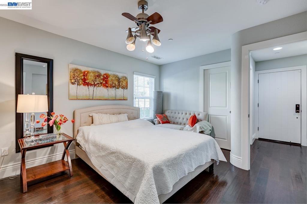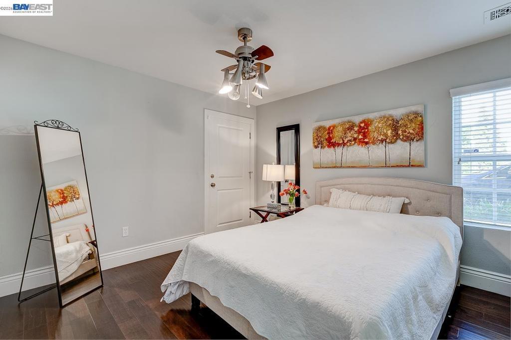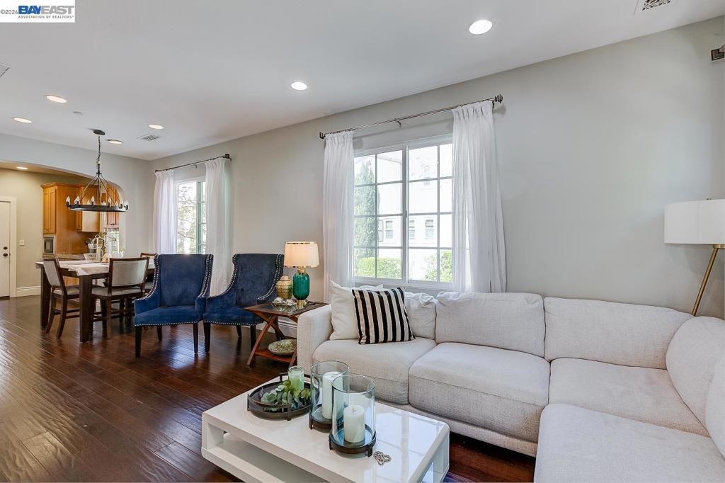 North East facing home in Mission Hills Weibel elementary school district. This corner home has lots of light and privacy. Spacious floor plan with a complete guest suite on the first level. Living room with views of the hills, small office nook. Gourmet kitchen, granite countertops and backsplash, stainless steel appliances including gas stovetop, nice layout in kitchen has balcony patio. Master bedroom with walk in closet, master bathroom offers dual sinks, shower glass enclosure with tile backsplash. Laundry with washer and dryer. This home features engineered hardwood flooring, recess lighting throughout, 3 full bathrooms, A/C, dual zone. Attached garage and one reserved parking. Right outside there is a park and playground. Walking distance to Weibel elementary school. Top rated Fremont Schools. Close to shops, 880/680, and the Warm Springs Bart. It is a prime location for commuters and everyday convenience, with schools, parks, and major employment centers just minutes away