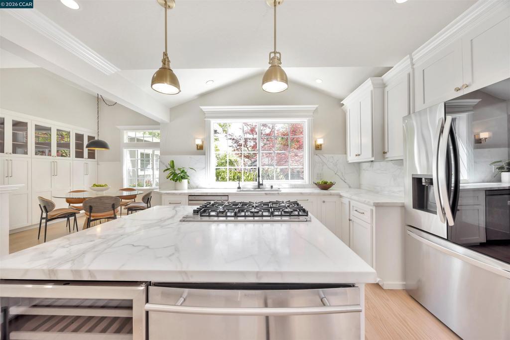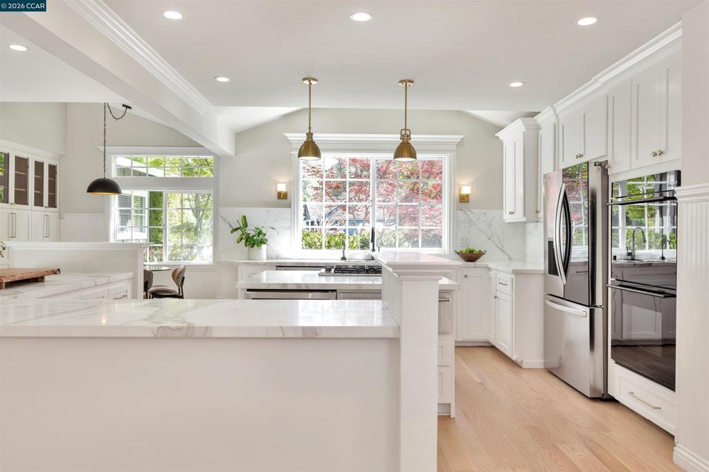 Tucked on a rarely available cul-de-sac in one of Lafayette’s most sought-after neighborhoods, 3553 Via Los Colorados offers a private yet connected lifestyle. Backing to the Lafayette Trail with easy access to downtown, top-rated schools, and swim clubs. Light-filled remodeled kitchen with shaker cabinetry, Calcutta countertops, stainless steel appliances, and eat-in nook opens to the family and dining rooms—ideal for everyday living and entertaining. Separate living room with fireplace. Primary suite with French doors to the yard. Bedroom wing includes three additional bedrooms, hall bath, and interior office. Detached conditioned office/studio.Private, serene backyard with creek, mature oaks, wraparound lawns, hot tub, built-in BBQ, and multiple entertaining spaces. Upgrades include hardwood floors, HVAC, tankless water heater, finished garage, and updated landscaping/fencing. Located in Lafayette’s award-winning school district, minutes to downtown.