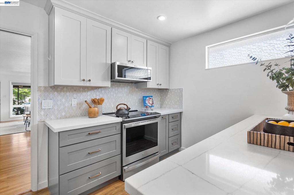 Welcome to this charming 3 bedroom, 2 bath single family home in the desirable Floresta Gardens neighborhood, offering 1,402 sq ft of updated living space. Original hardwood floors add warmth and character, while abundant natural light fills the home through double pane windows and solar tube skylights in the hallway and main bath. The kitchen is updated with quartz countertops and stainless steel appliances, all less than four years old, including an induction stove, refrigerator, dishwasher, microwave, and washer and dryer. The home also features a remodeled main bathroom. Enjoy top-down/bottom-up light filtering cellular shades in the living areas and blackout shades in all bedrooms, plus new ceiling fans in two bedrooms. Additional features include central gas heating, a wood burning fireplace, Tesla EV charger, fiber internet wiring, exterior security cameras, and generous storage. The roof was replaced in 2019. The front and back yards feature automated irrigation and a mature orange tree, perfect for outdoor enjoyment.